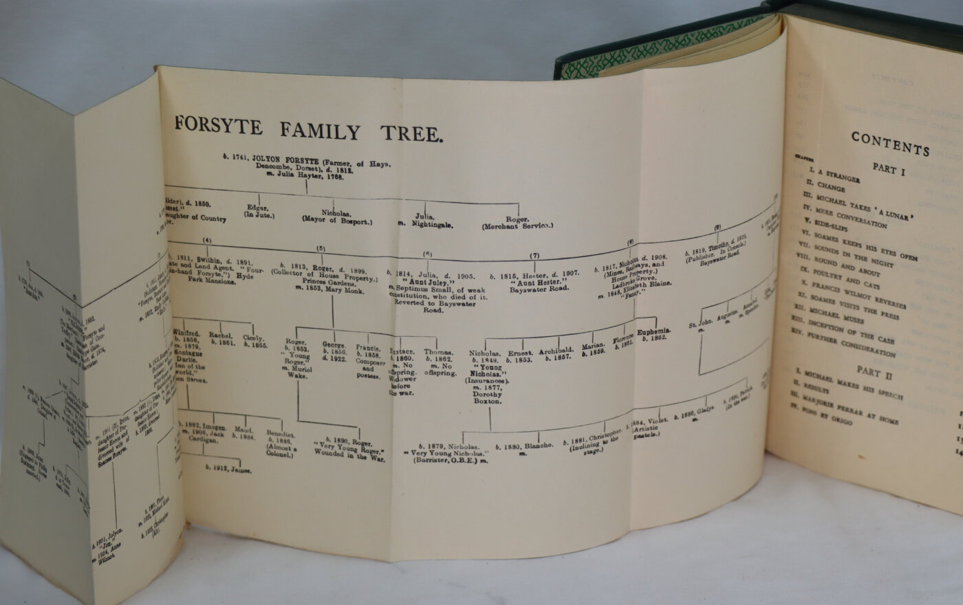 The Forsyte family series of novels and short stories collectively known as The Forsyte Chronicles is similar in many ways to Galsworthy’s family, and the patriarch, Old Jolyon, is modelled on Galsworthy’s father. The main sequence runs from the late 19th century to the early 1930s, featuring three generations of the family. The books were popular when first published and their latter-day popularity was boosted considerably when BBC Television broadcast a 26-part adaptation for the author’s centenary in 1967.