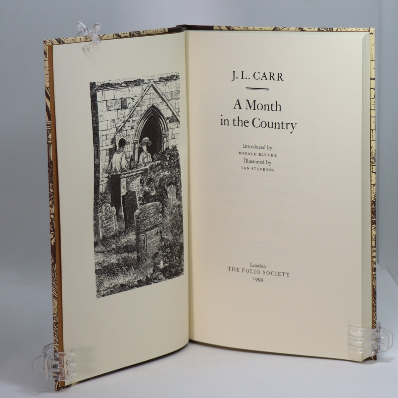 In a fitted box. Brown cloth spine with gilt title. Boards have a cream and brown image of two figures in a churchyard.