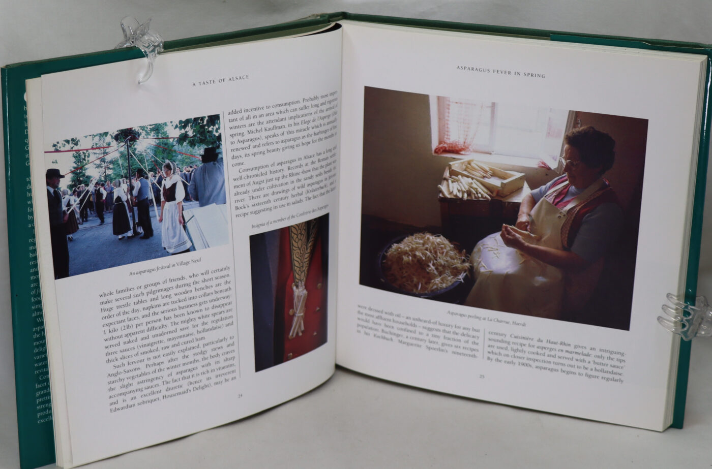 Hardcover, 159 pages in good condition. Cradled between the Vosges and the Rhine and squeezed for centuries between two great European powers, Alsace is one of the best kept secrets in France- a land of paradoxes, intriguing and unique. Definitely part of France ( yet somehow not quite French), certainly not part of Germany ( yet somehow rather Germanic), Alsace combines the best of both worlds. Describing with rare insight and wry humor the people, the food, and the wines. Filled with recipes from the region’s most talented chefs, bakers, and cheesemakers. Beautiful color photos of the area’s scenery and the tempting food.