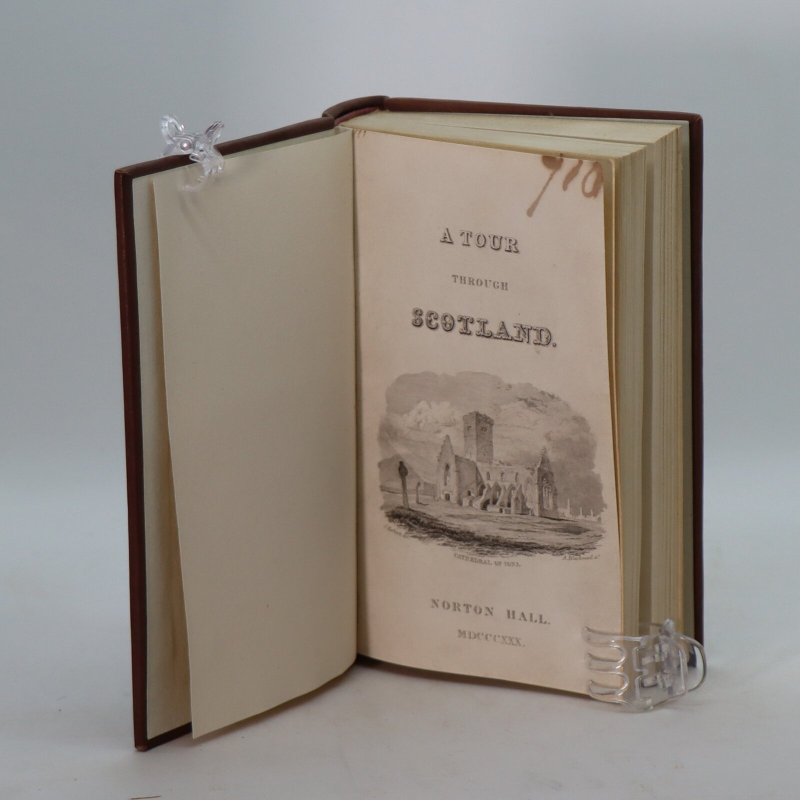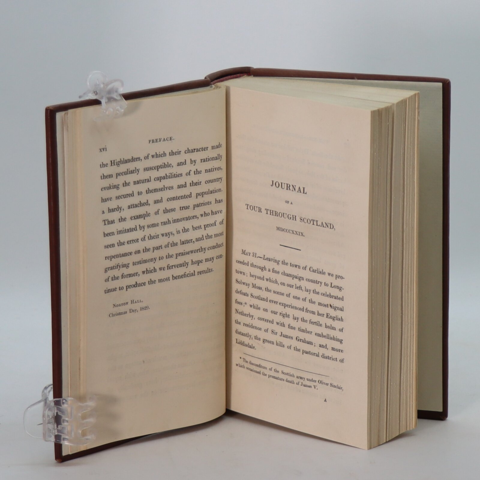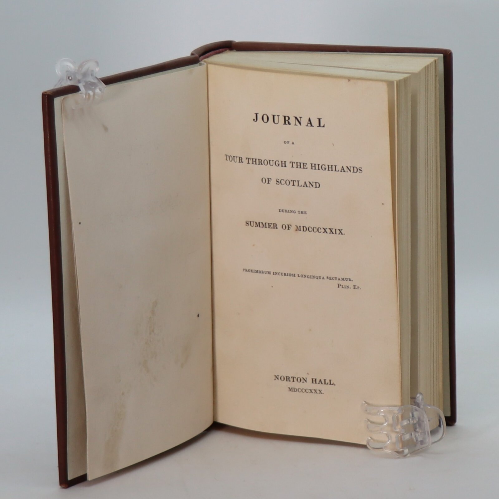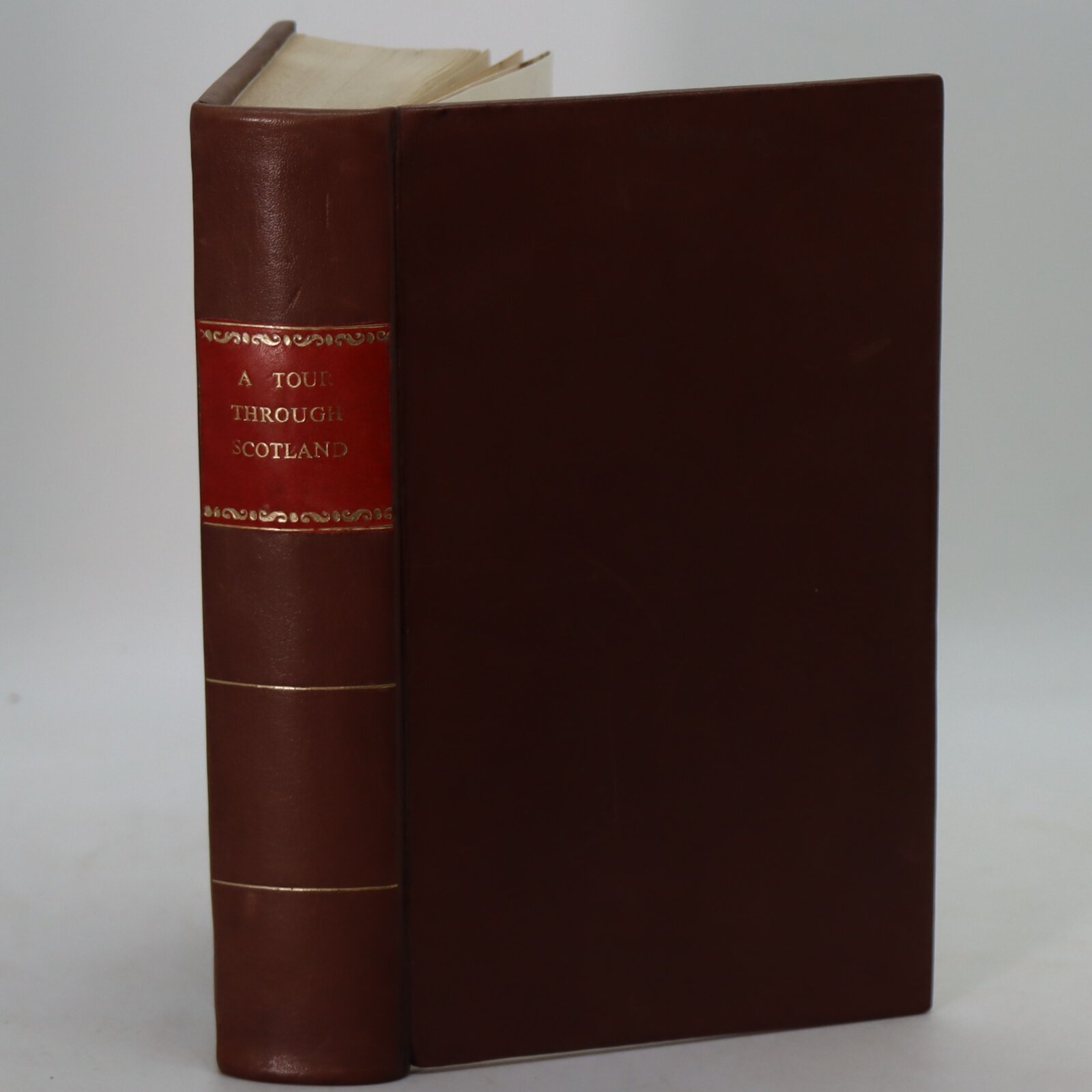 Brown calf binding with red title plate and gilt banding and lettering on the spine. Rebound.
