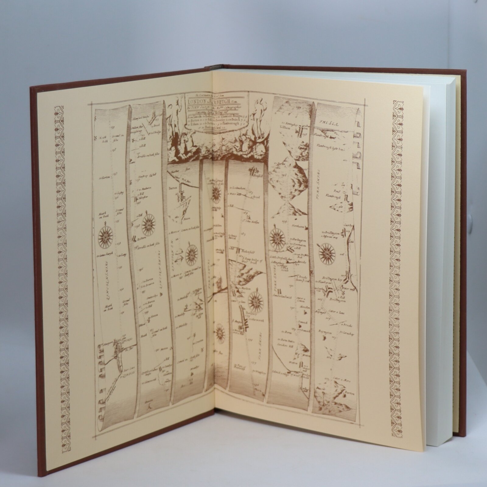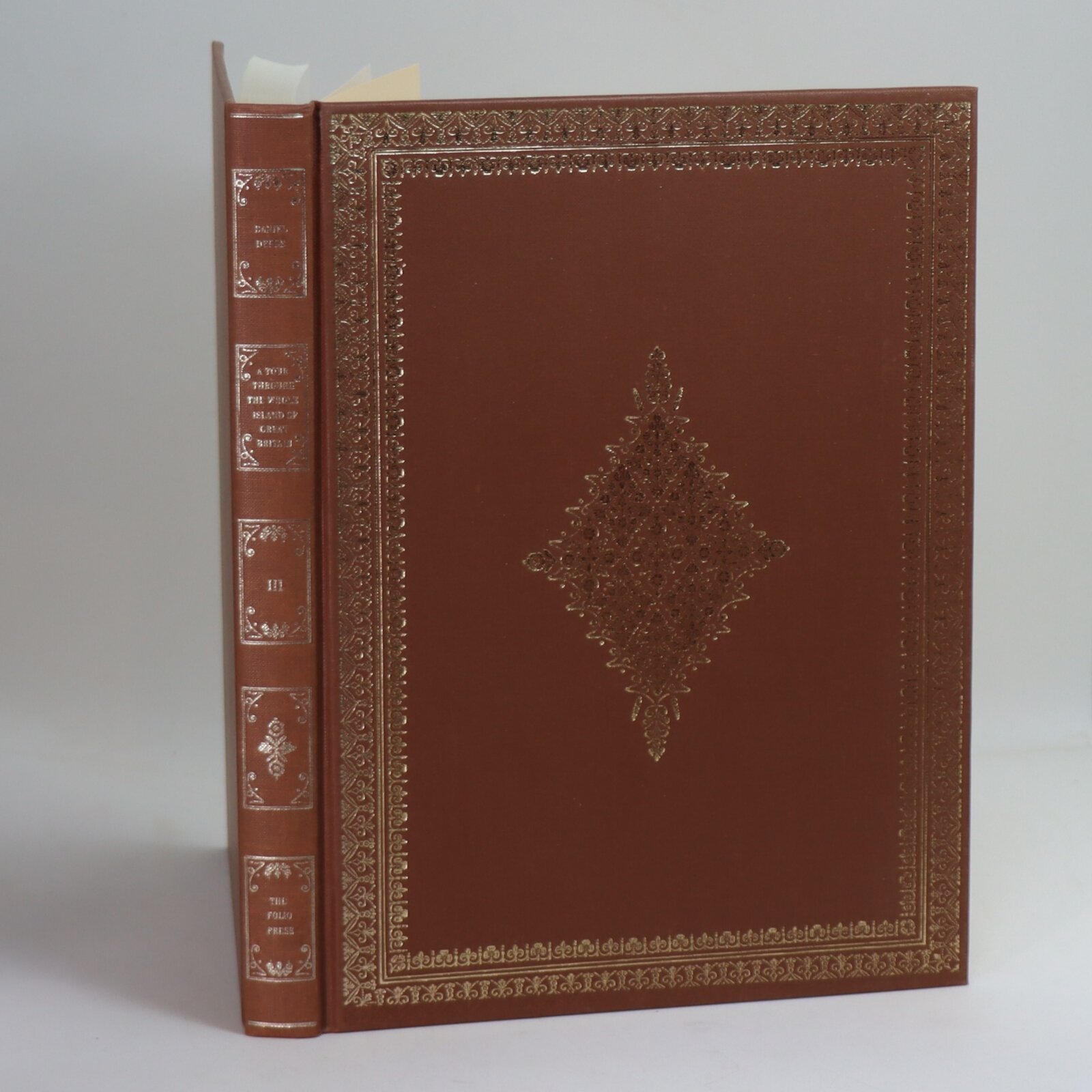In a matching fitted box. Brown cloth binding with gilt titles on the spines. Ornate gilt edging and centre diamond shape on the front boards.