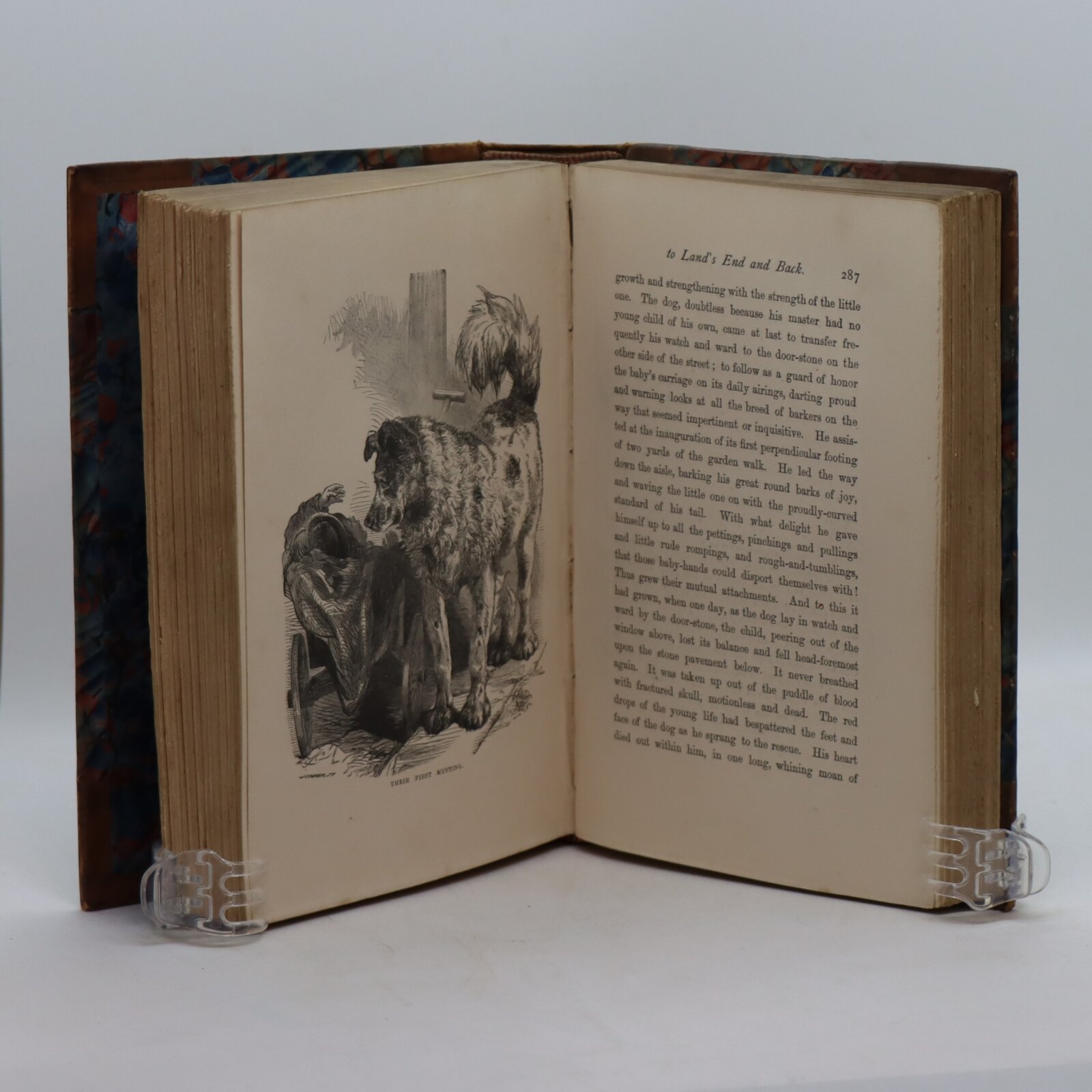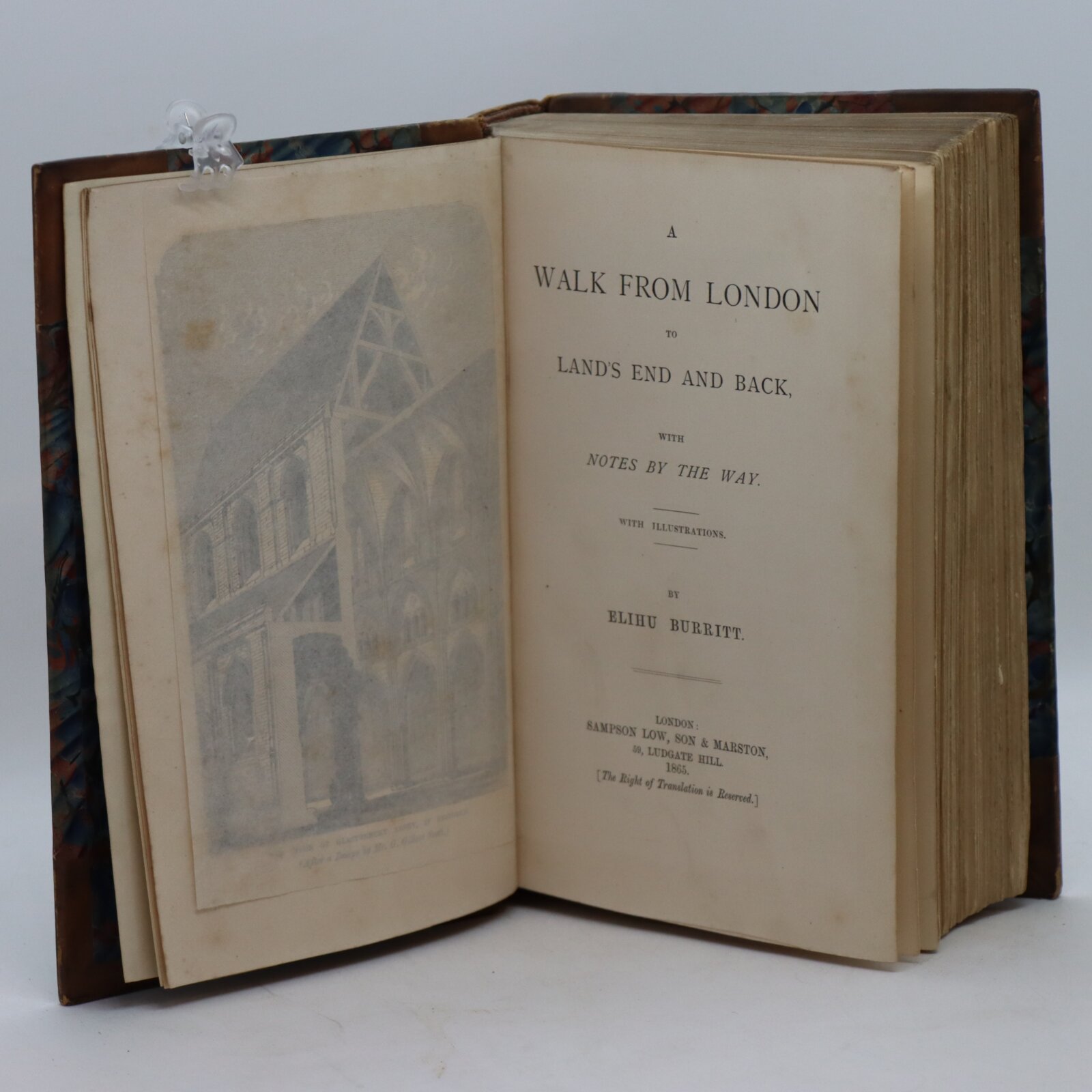 Tan calf spine with blue marbled boards. Red and black title plates. Gilt lettering and decoration on the spine.