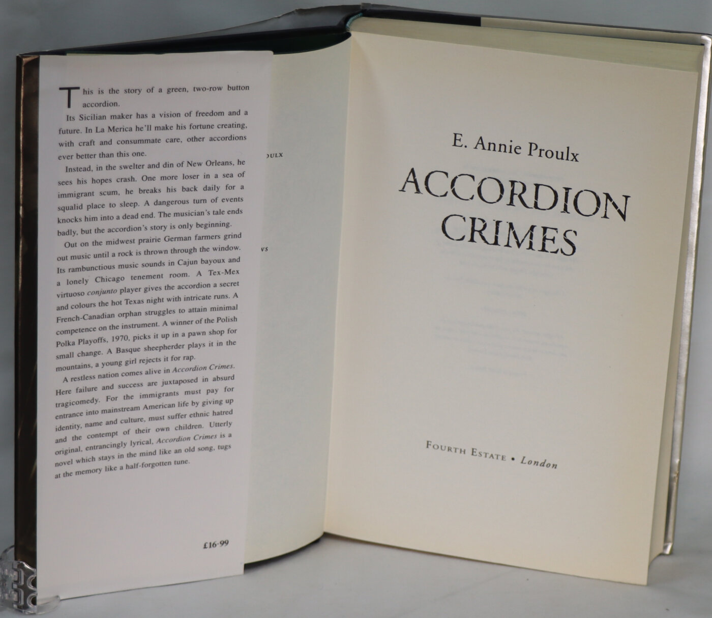 ‘Accordion Crimes’ is a masterpiece of story-telling that spans a century and a continent. It opens in 1890 in Sicily, when an accordion-maker and his son, carrying little more than his finest button accordion, begin their voyage to the teeming, violent port of New Orleans. Within a year, the accordion-maker is murdered by an anti-Italian lynch mob, but his instrument carries the novel into another community of immigrants: German-Americans founding a new town in South Dakota. Moving from South Dakota to Texas, from Montana to Maine, the nine instantly compelling and intricately connected sections of the novel illuminate the lives of the founders of a nation, descendants of Mexicans, Poles, Germans, Irish, Scots and Franco-Canadians. Through the music of the accordion they express their fantasies, sorrows and exuberance.