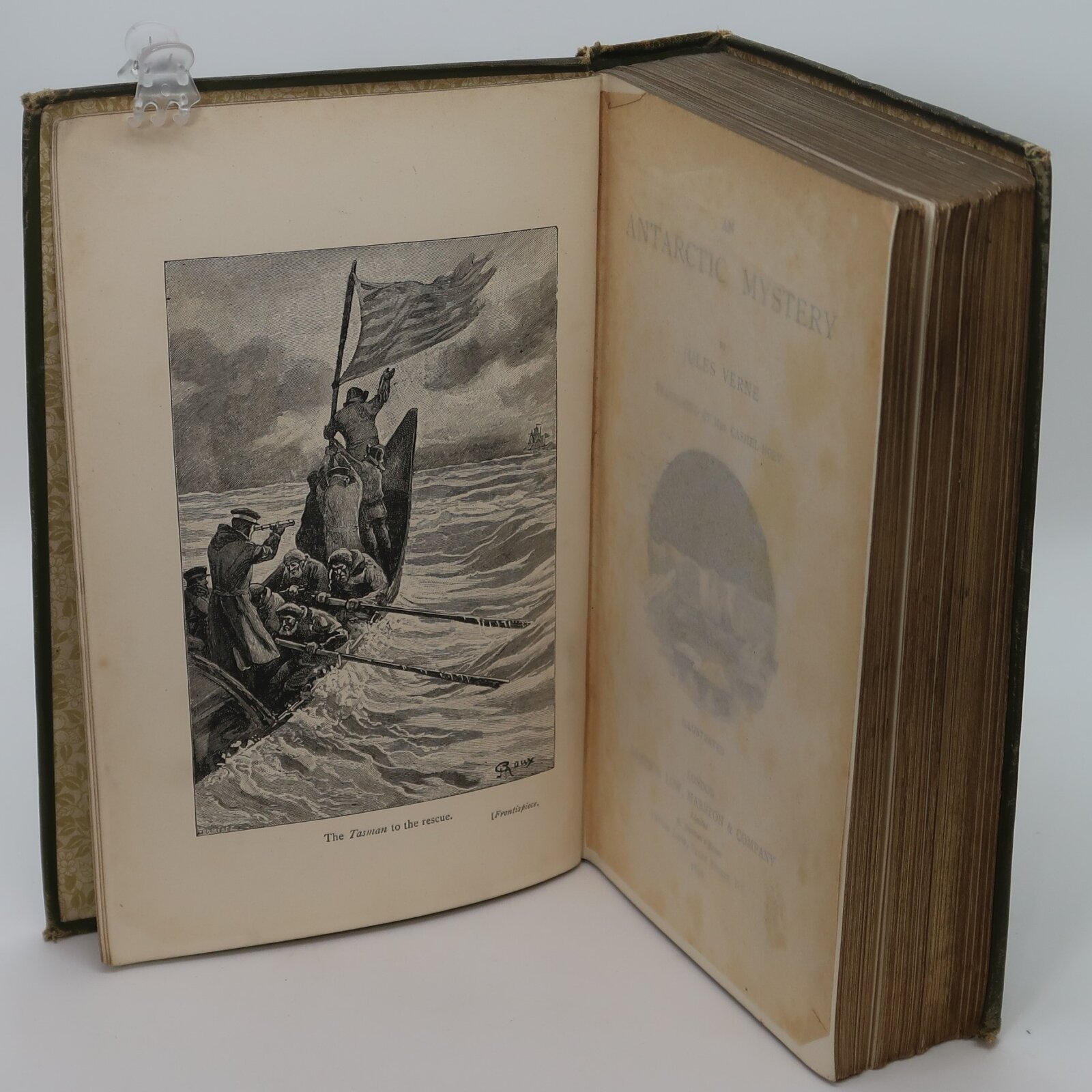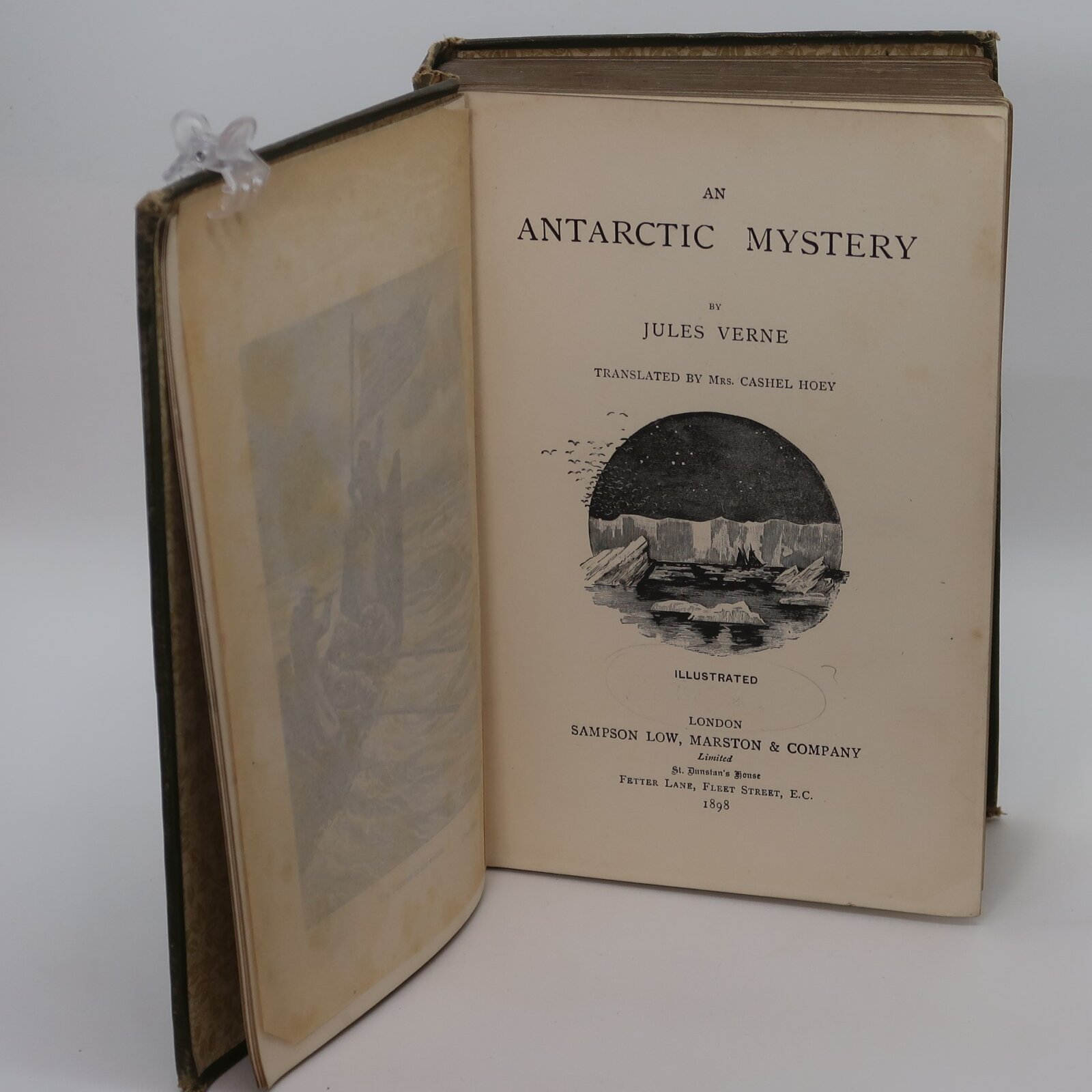 An Antarctic Mystery (French: Le Sphinx des glaces, The Sphinx of the Ice Fields) is a two-volume novel by Jules Verne. Written in 1897, it is a response to Edgar Allan Poe’s 1838 novel The Narrative of Arthur Gordon Pym of Nantucket. It follows the adventures of the narrator and his journey from the Kerguelen Islands aboard Halbrane.