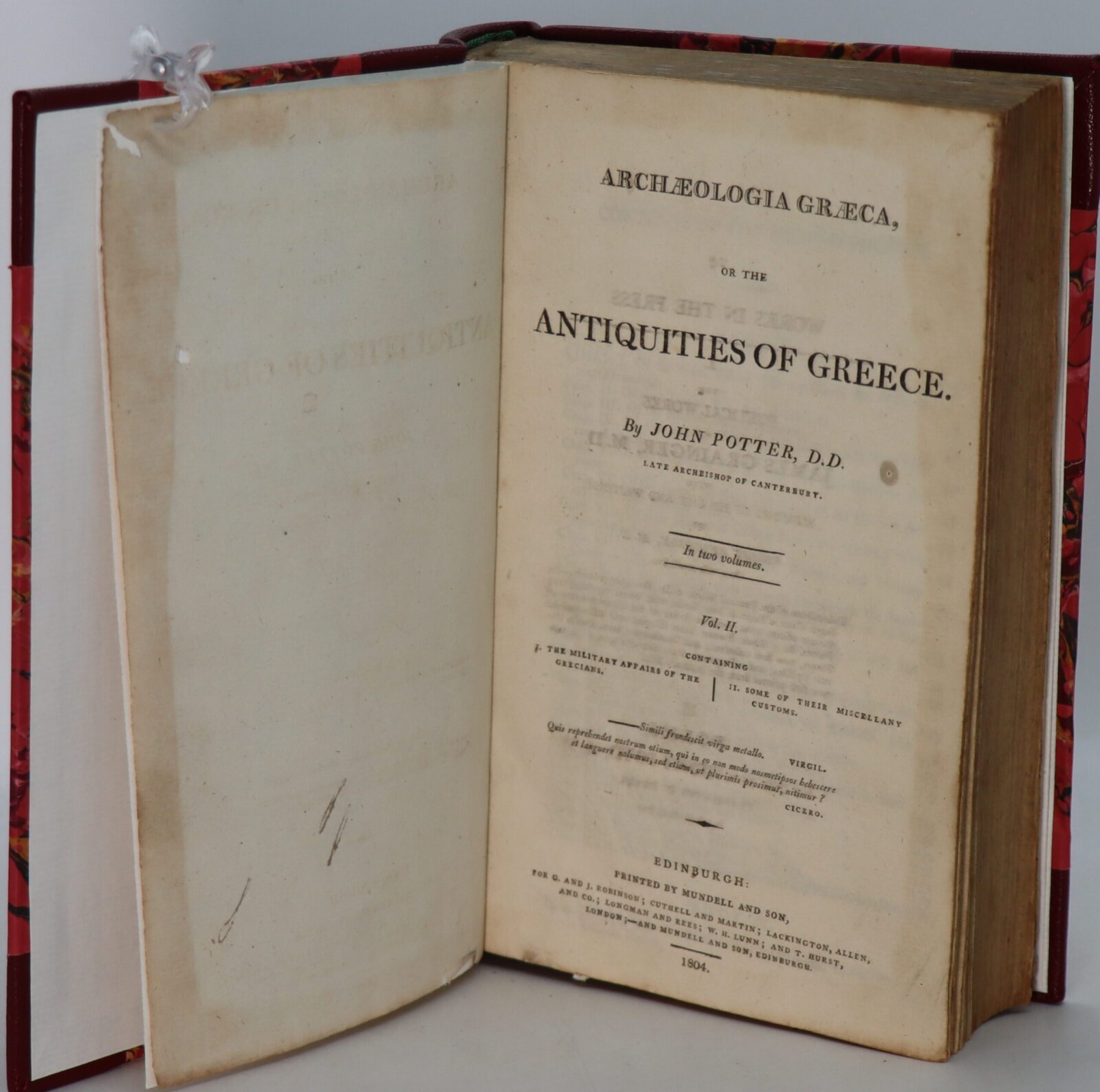 Archaeologia Graeca: or, The Antiquities of Greece. Containing The Civil Government of Athens, The Religion of Greece; The Military Affairs of the Grecians, Some of Their Miscellany Customs. by John Potter.