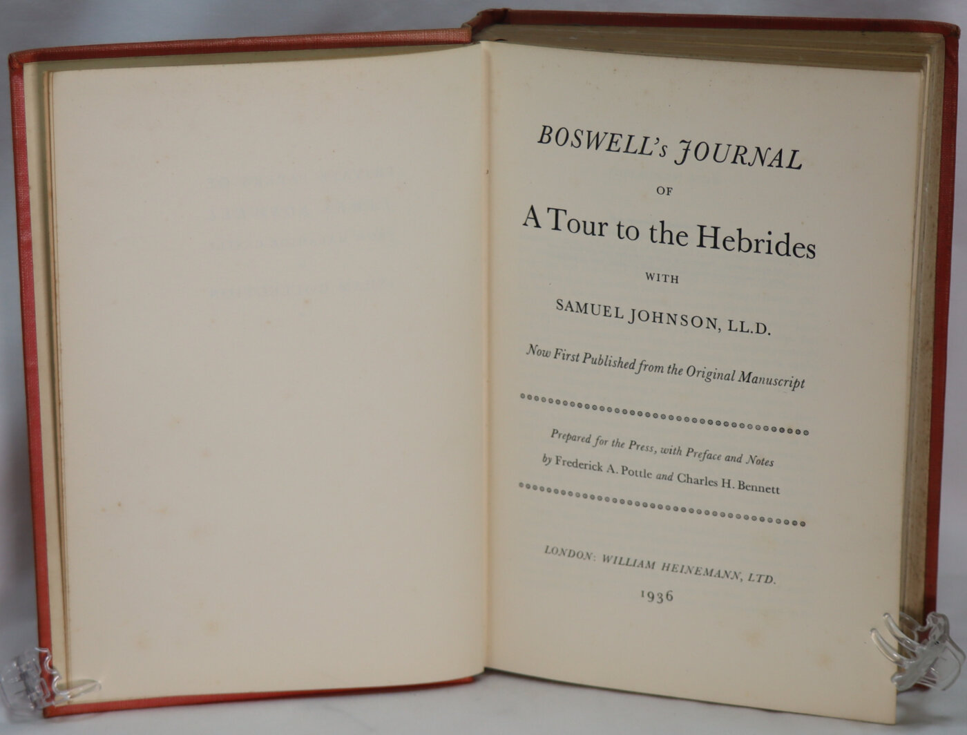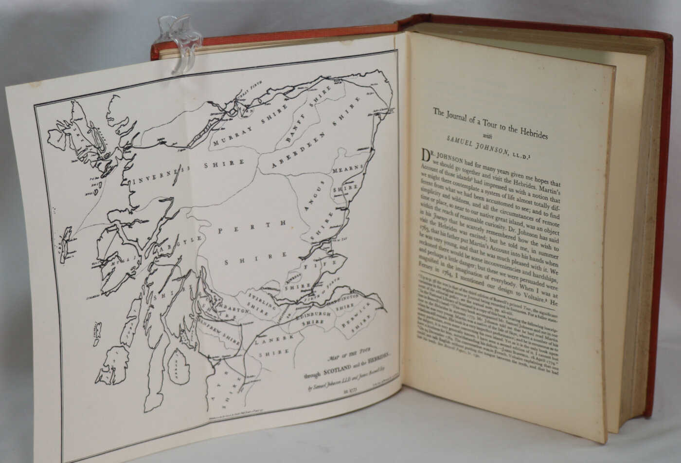 The Journal of a Tour to the Hebrides with Samuel Johnson, LL.D. is a travel journal by Scotsman James Boswell first published in 1785. In 1773, Boswell enticed his English friend Samuel Johnson to accompany him on a tour through the highlands and western islands of Scotland. Johnson was then in his mid-sixties and well known for his literary works and his Dictionary. The two travelers set out from Edinburgh and skirted the eastern and northeastern coasts of Scotland, passing through St Andrews, Aberdeen and Inverness. They then passed into the highlands and spent several weeks on various islands in the Hebrides, including Skye, Coll, and Mull. After a visit to Boswell’s estate at Auchinleck, the travelers returned to Edinburgh. Johnson published his Journey to the Western Islands of Scotland on 18 January 1775.