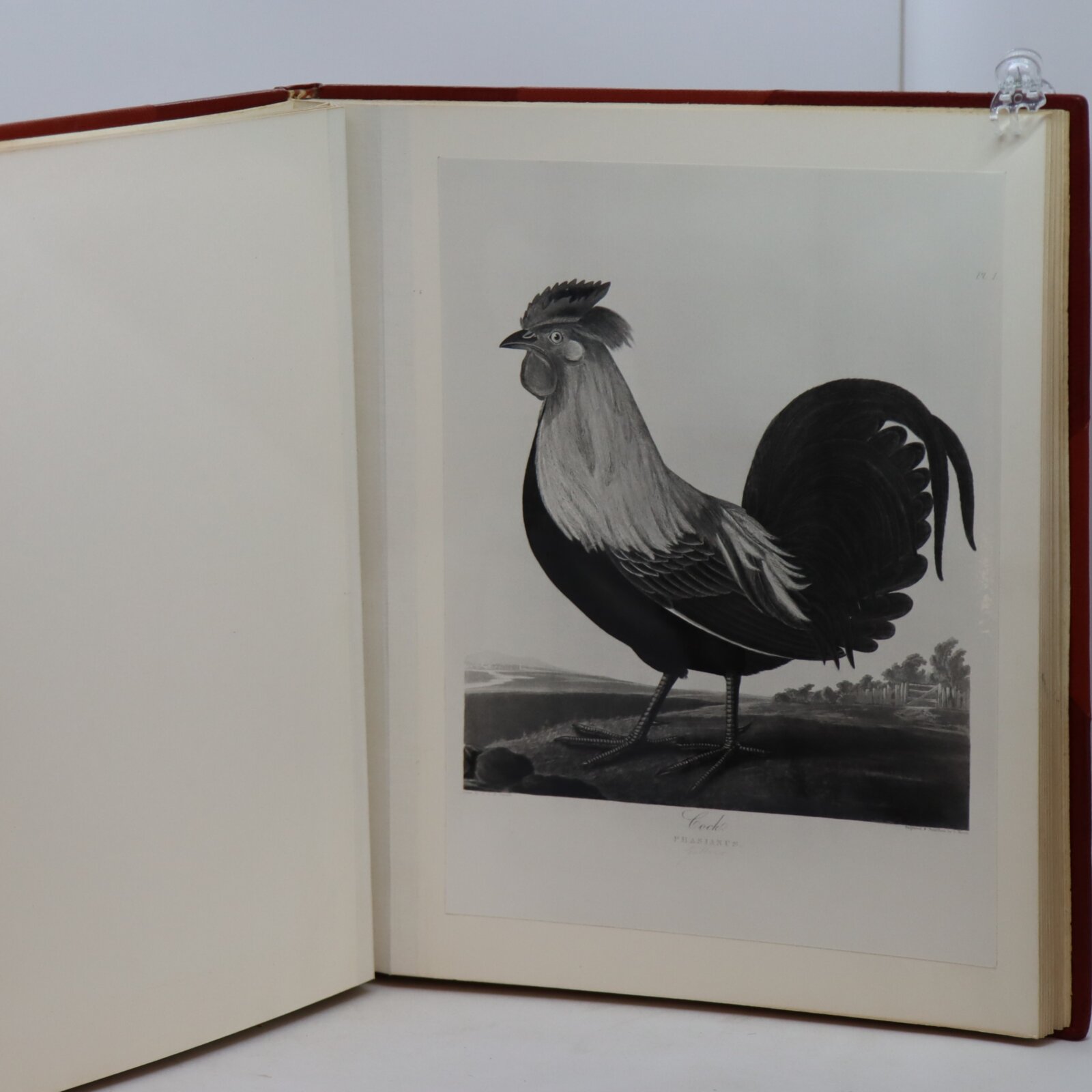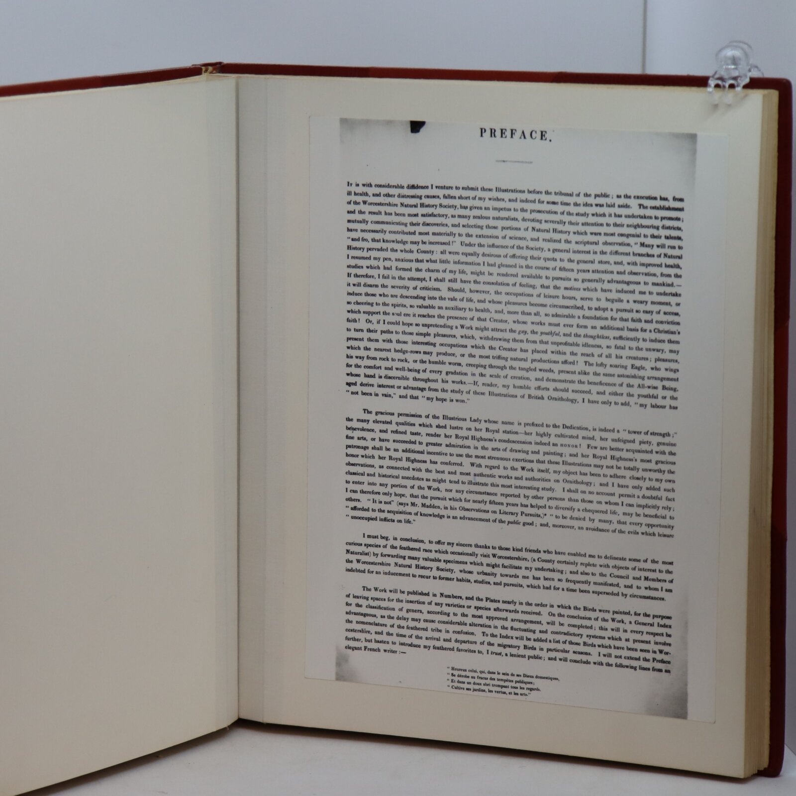 Red calf spine and corners, cloth half boards. Gilt titles.