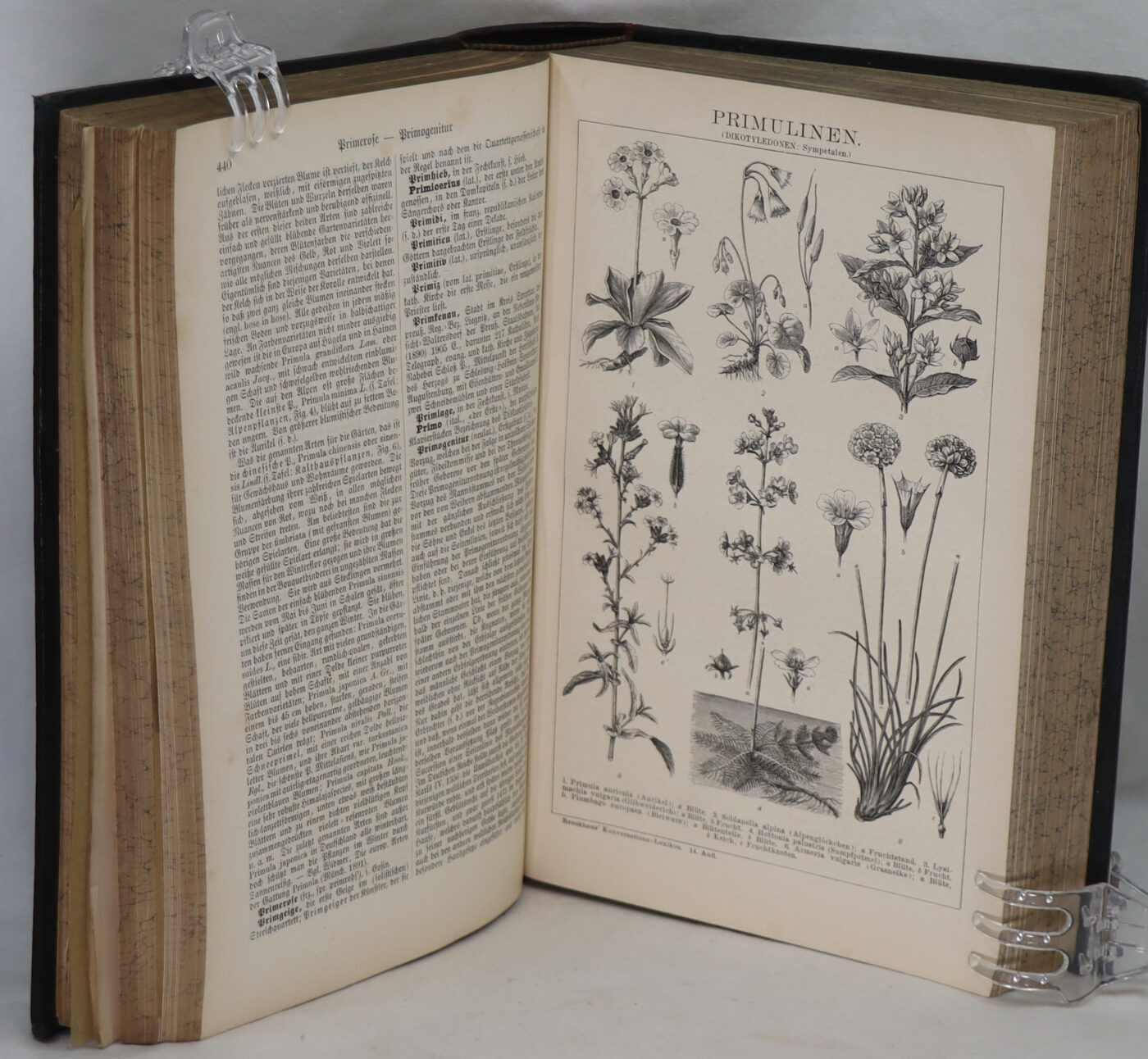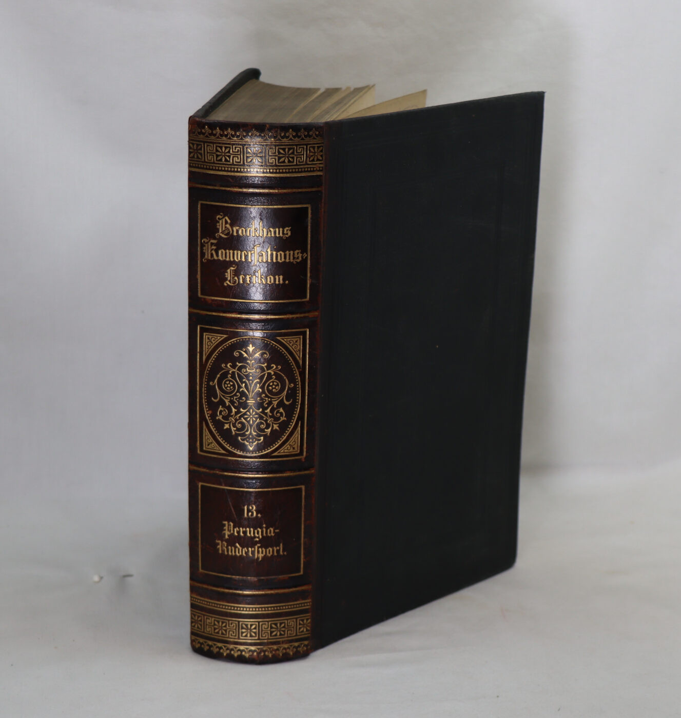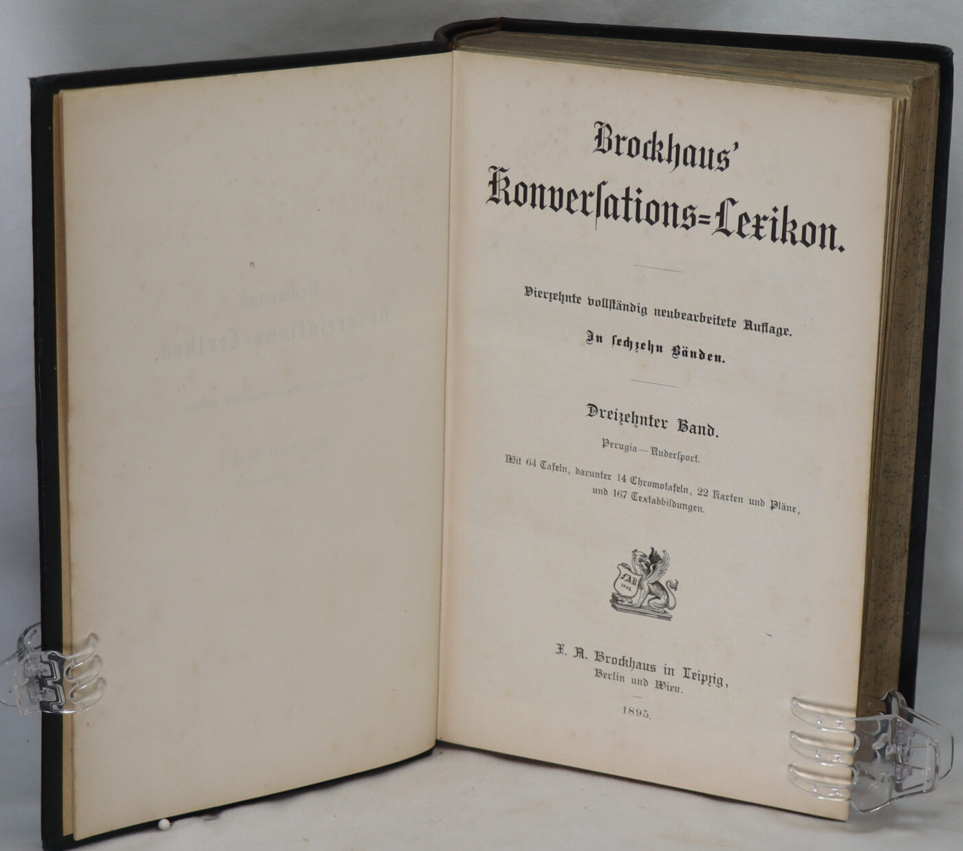 “No work of reference has been more useful and successful, or more frequently copied, imitated and translated, than that known as the Conversations-Lexikon of Brockhaus,” wrote the Encyclopædia Britannica Eleventh Edition (please view enclosed photographs). The work was intended not for scientific use, but to promote general intellectual improvement by giving the results of research and discovery in a simple and popular form without extended details. This format, a contrast to the Encyclopædia Britannica, was widely imitated by later 19th century encyclopedias in several countries.