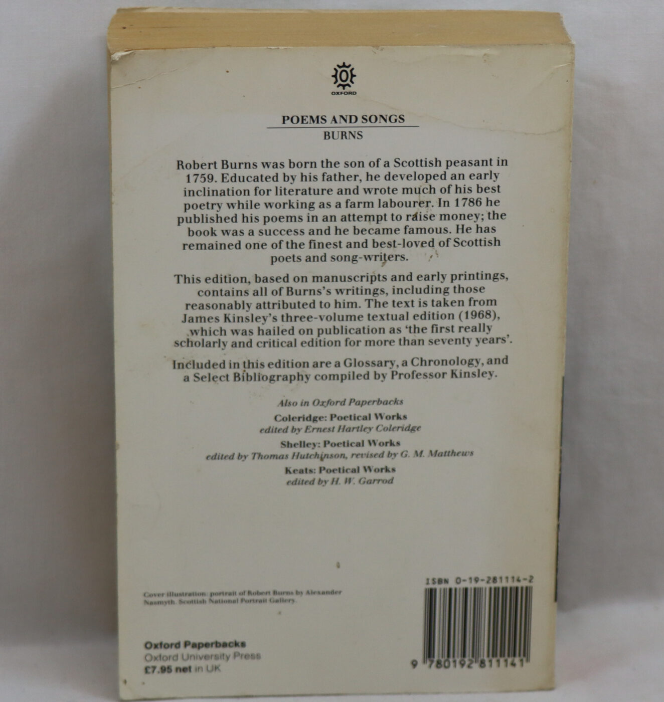 Paperback. White cover with Robert Burns image.