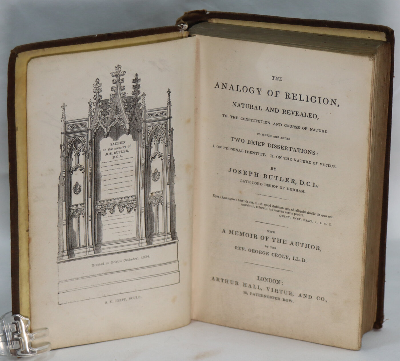 Joseph Butler (18 May 1692 – 16 June 1752) was an English Anglican bishop, theologian, apologist, and philosopher, born in Wantage in the English county of Berkshire (now in Oxfordshire). His principal works are the Fifteen Sermons Preached at the Rolls Chapel (1726) and The Analogy of Religion (1736).