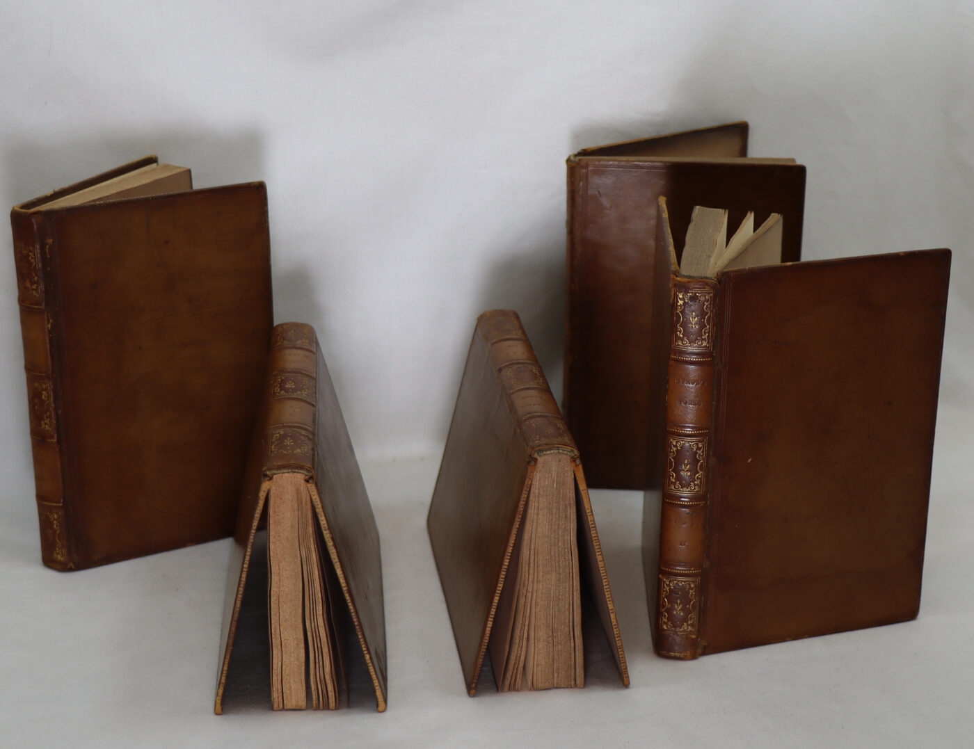 Full tan calf bindings. Embossed gilt tooling on the spine. Embossed title and volume. Volumes I, II, II, IV and V. Dimensions are for one volume.
