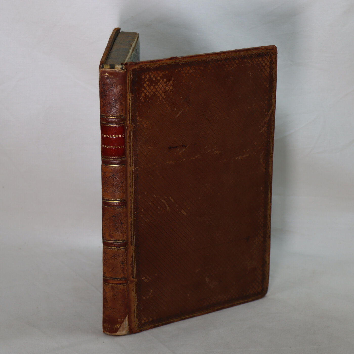 Hardcover. Condition: Very Good. Contemporary brown full leather binding with gilt lettering on the spine that reads, “Chalmer’s Discourse.” 5 3/4″ x 9.”