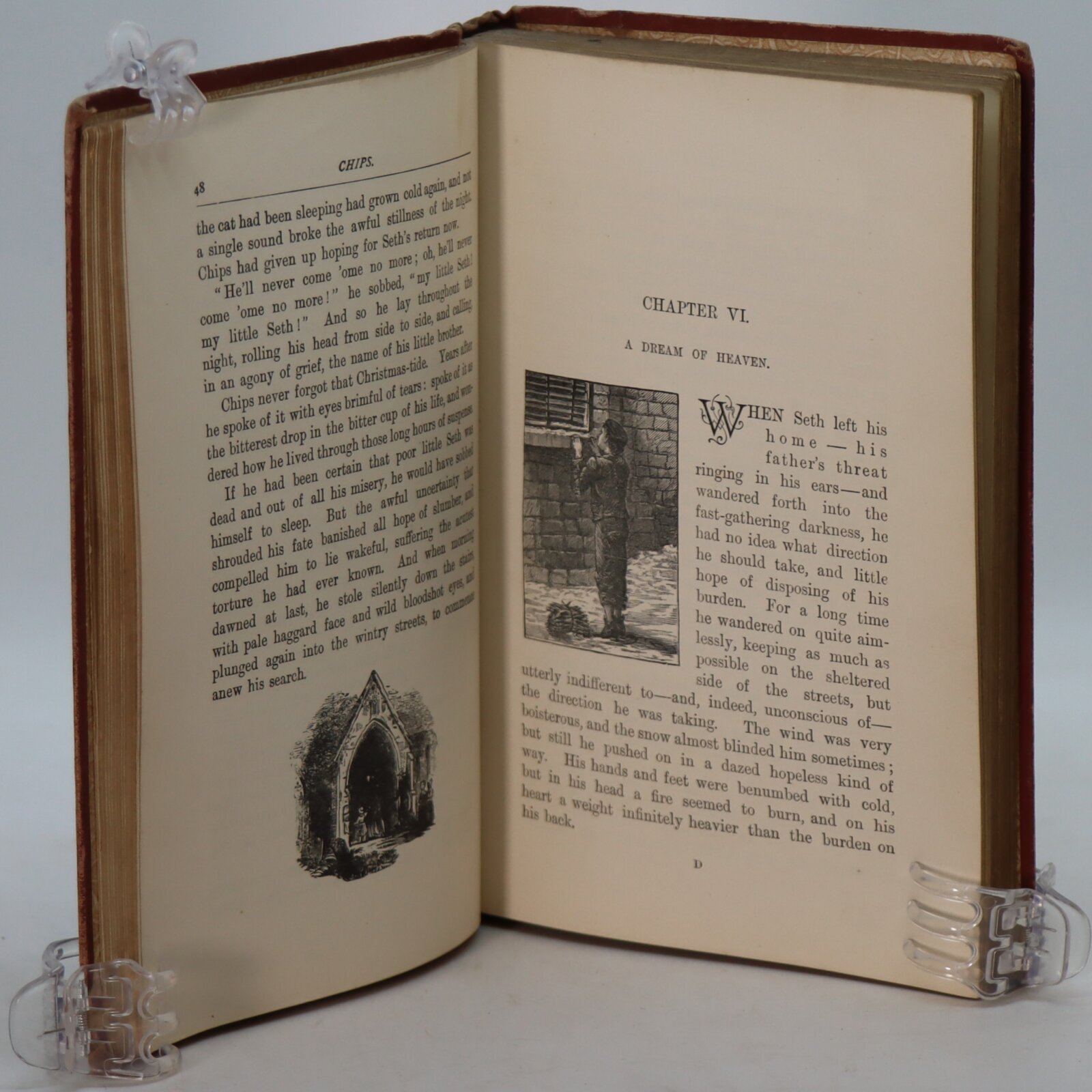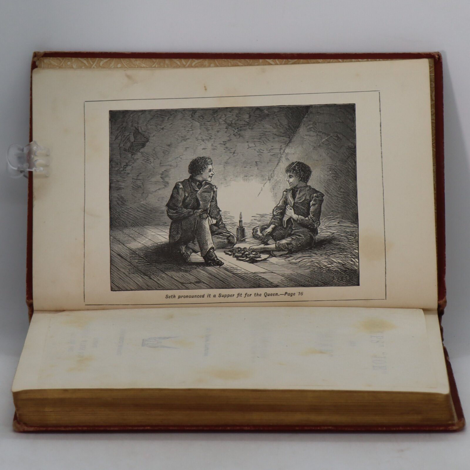 Brown cloth binding with embossed gilt figures and title on the front board. Similar on the spine. All edges gilt.
