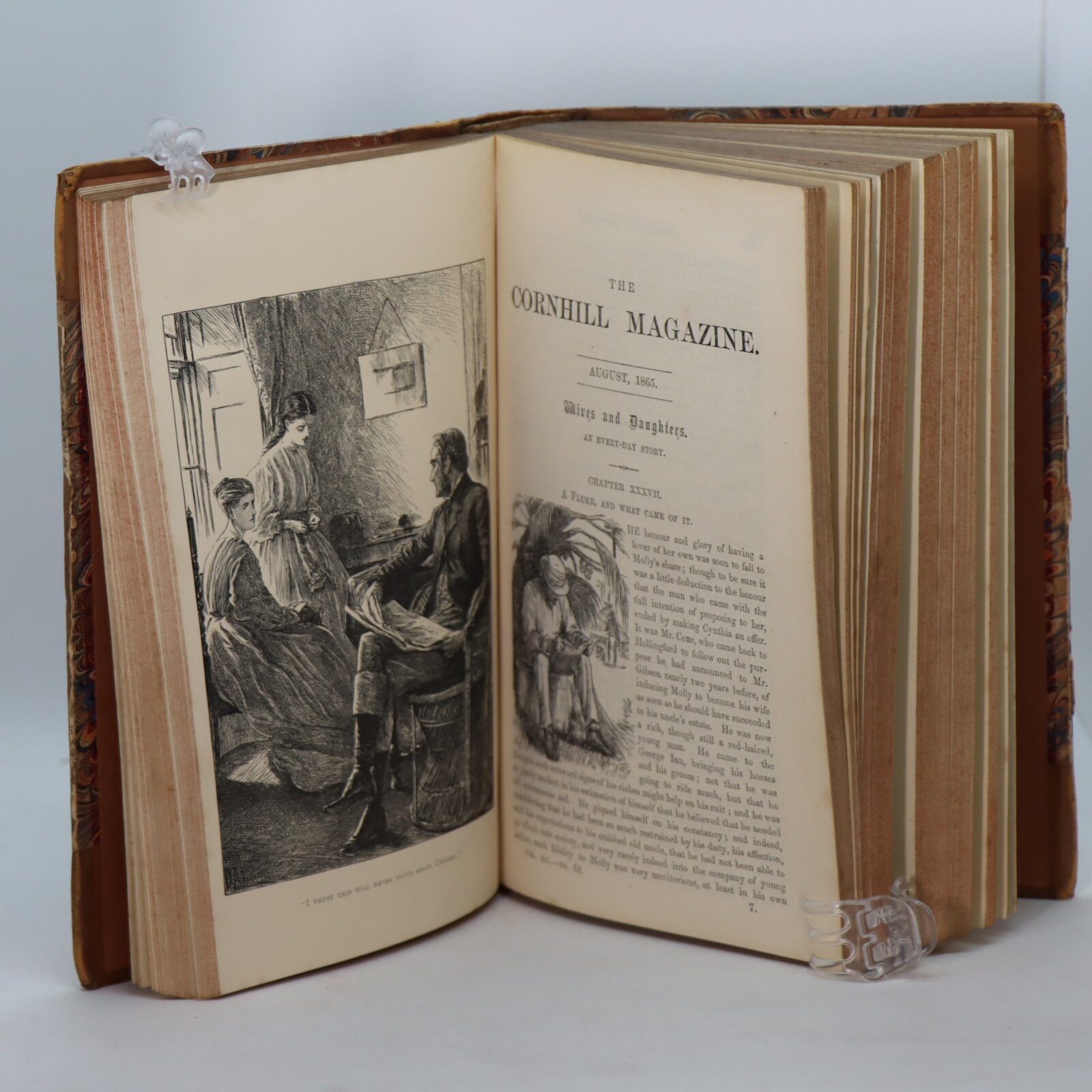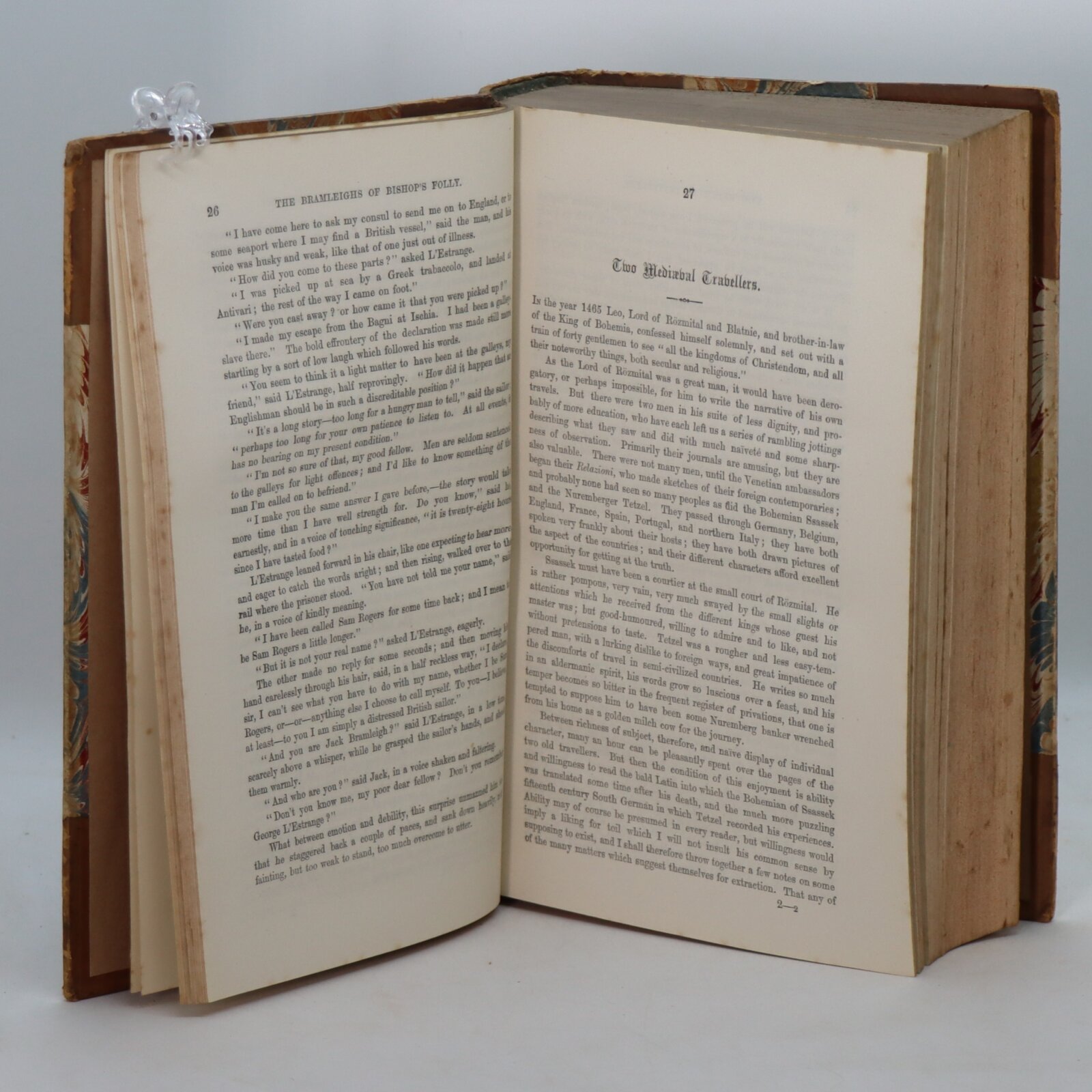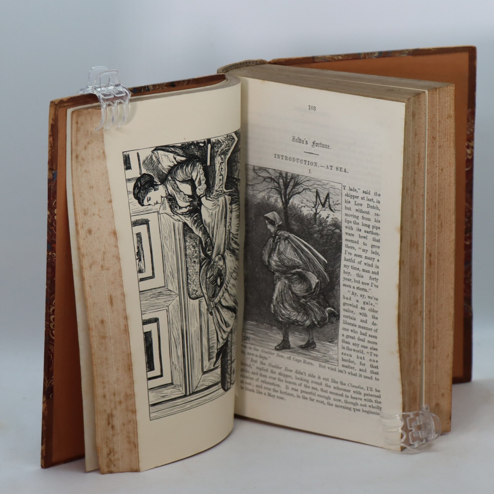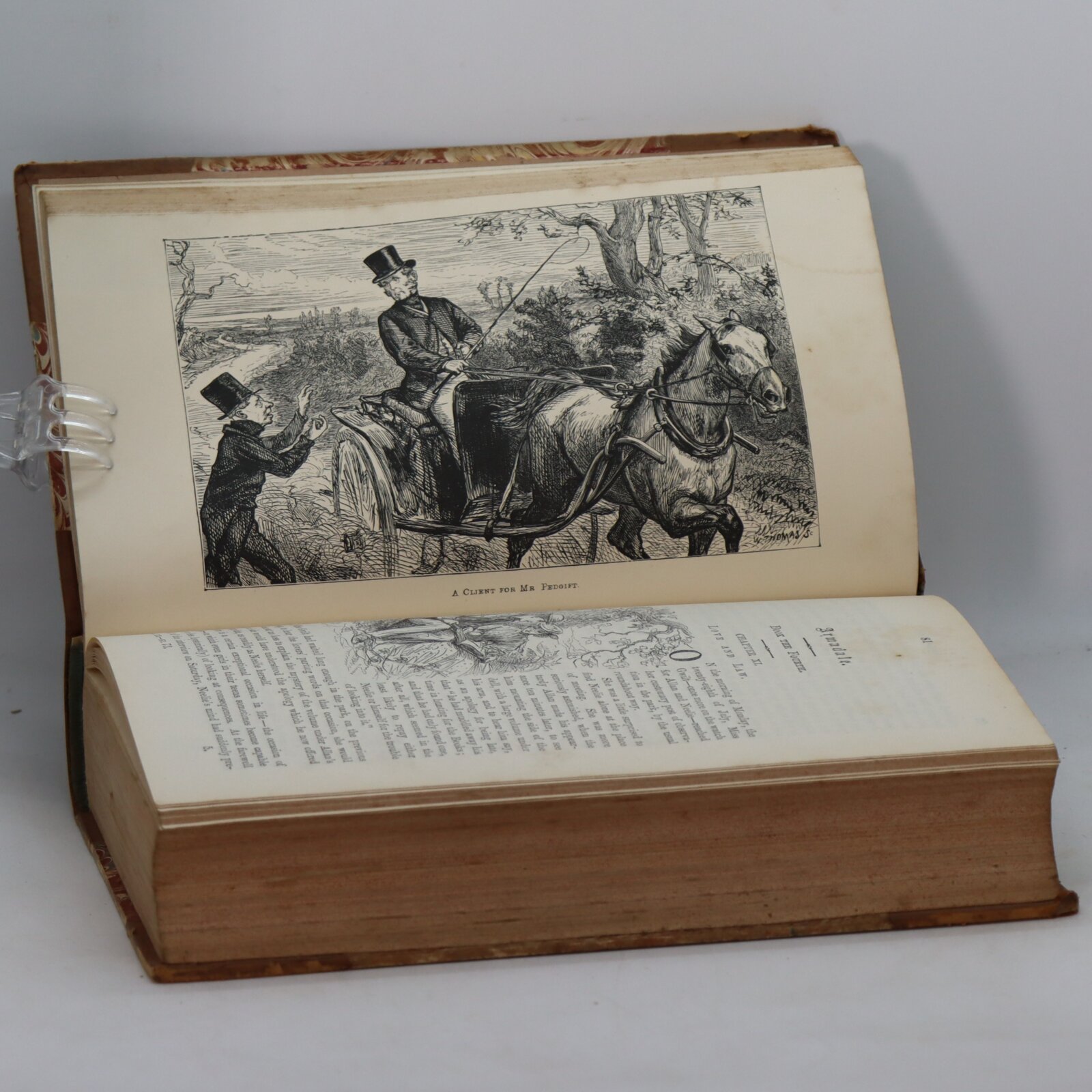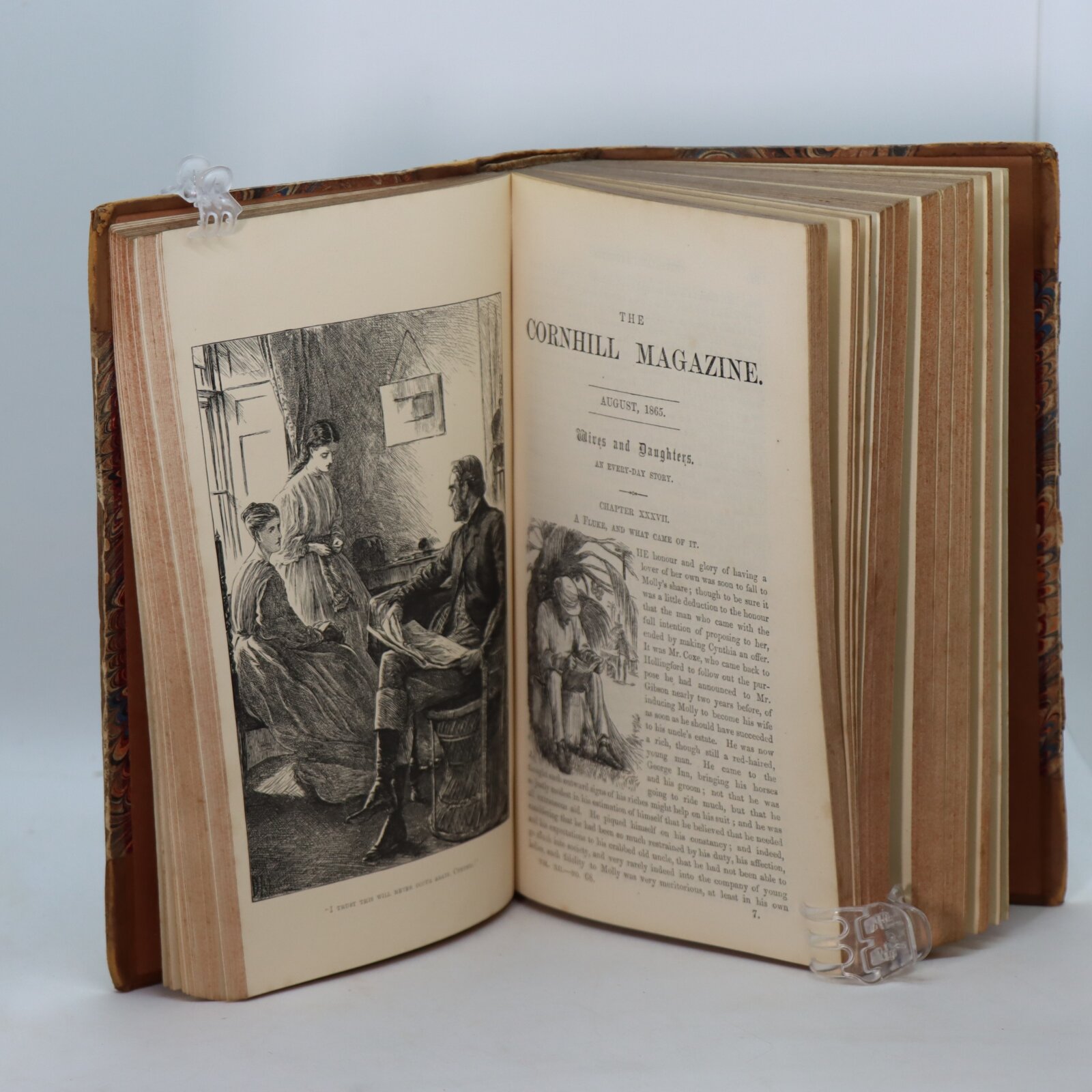 Volumes III, IV, V, VI, VII, VIII, XII, XIII, XVI, XVIII, XX, XXII, XXIV, XXV, XXVII & XXVIII. Tan leather spine and corners, red marbled boards. Red and light brown title plates with gilt lettering and banding. One volume has an 1878 bookmark inside (advertisement for Brown & Polson’s flour).