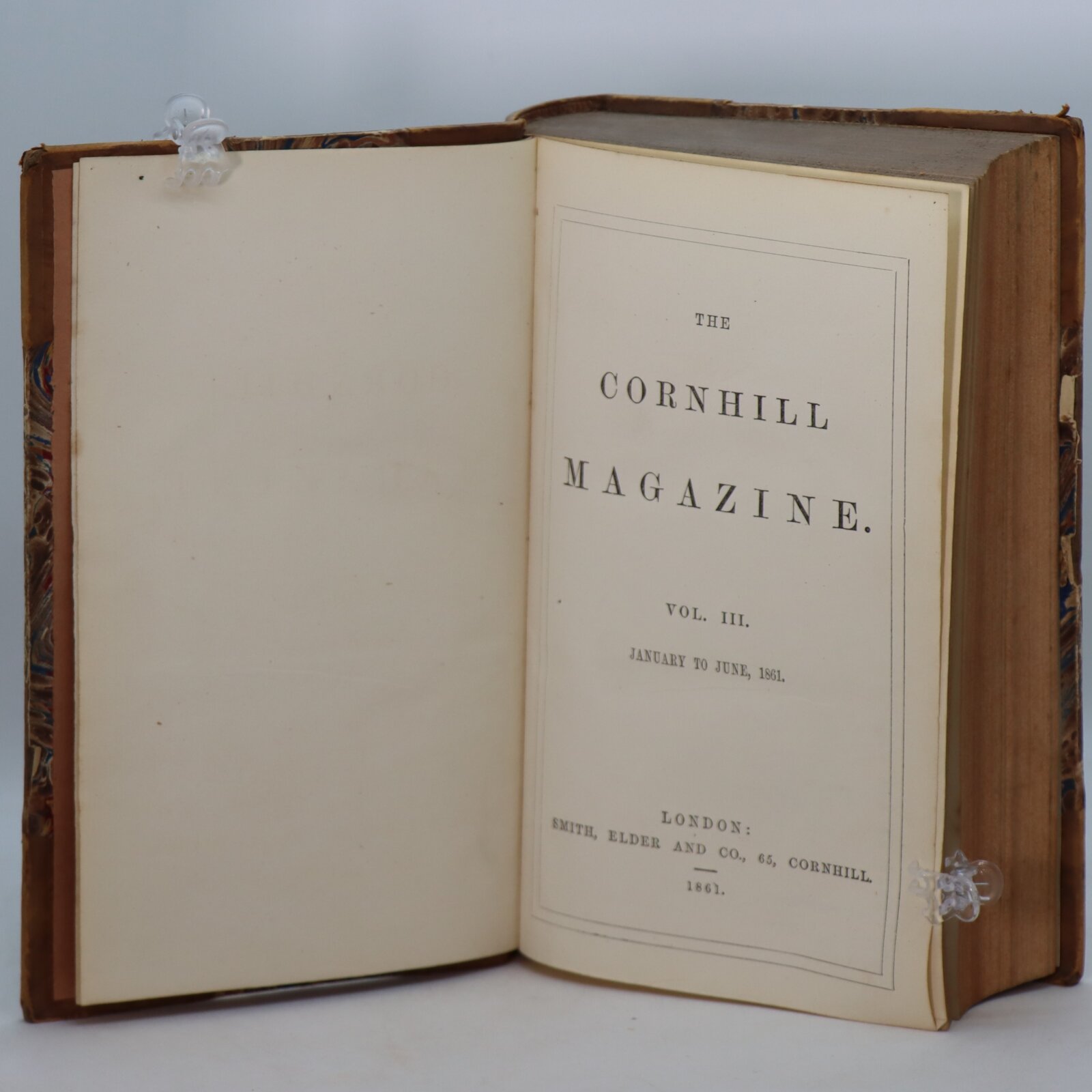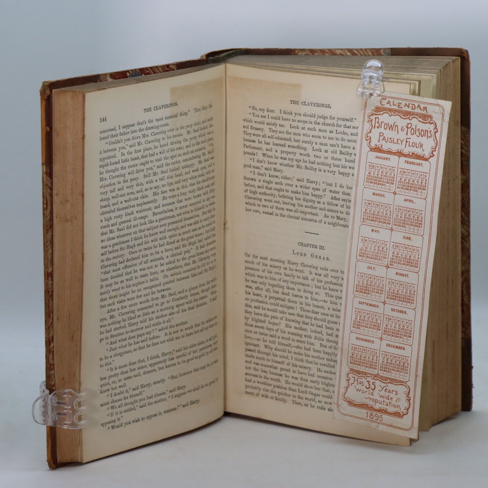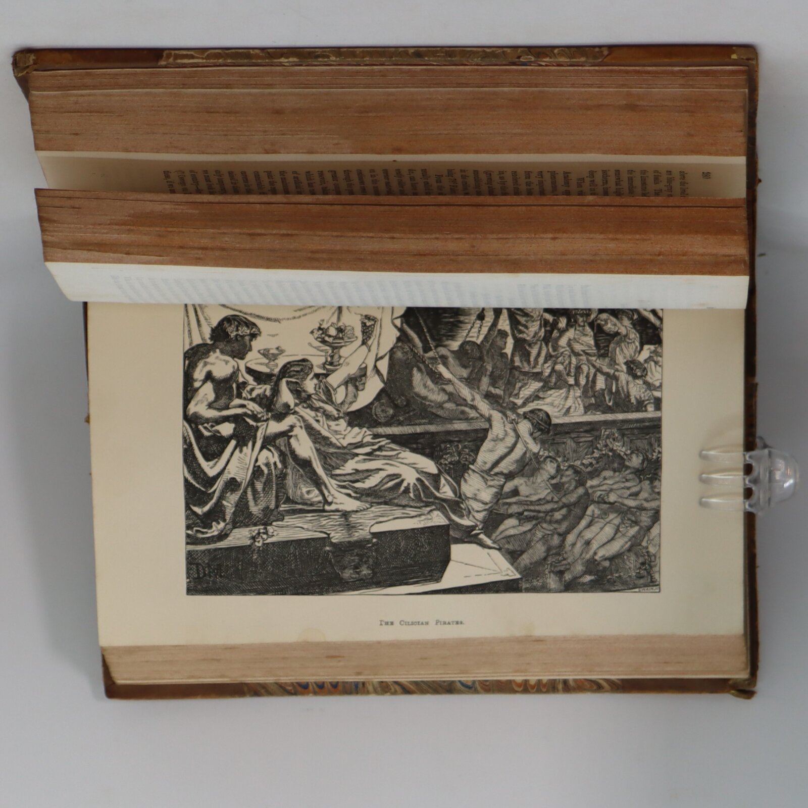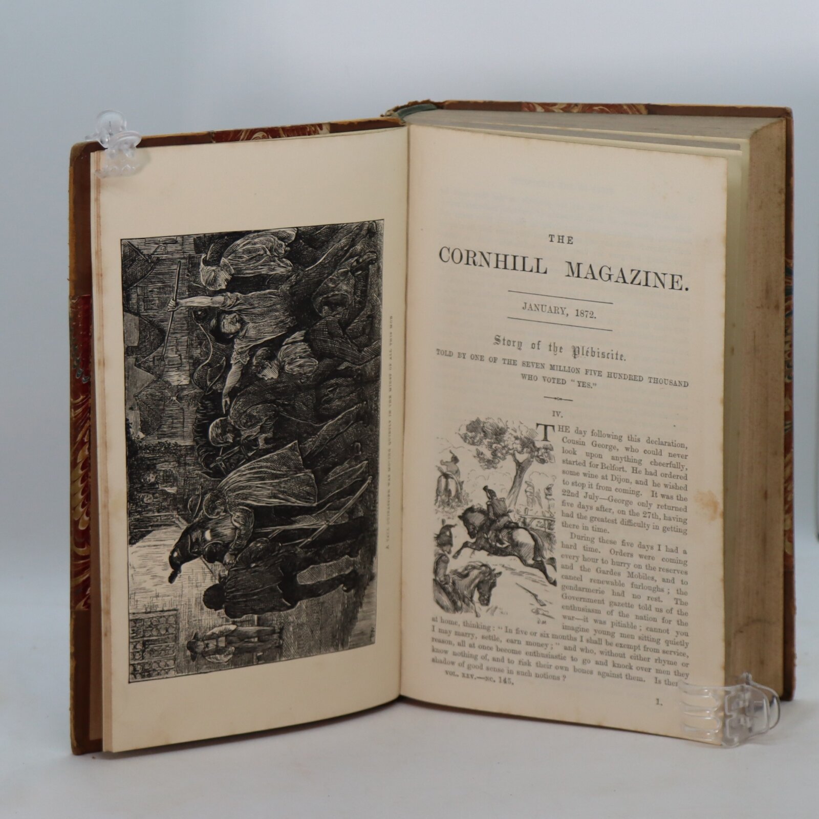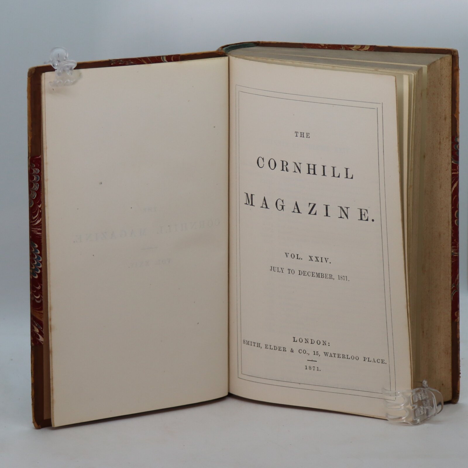Volumes III, IV, V, VI, VII, VIII, XII, XIII, XVI, XVIII, XX, XXII, XXIV, XXV, XXVII & XXVIII. Tan leather spine and corners, red marbled boards. Red and light brown title plates with gilt lettering and banding. One volume has an 1878 bookmark inside (advertisement for Brown & Polson’s flour).