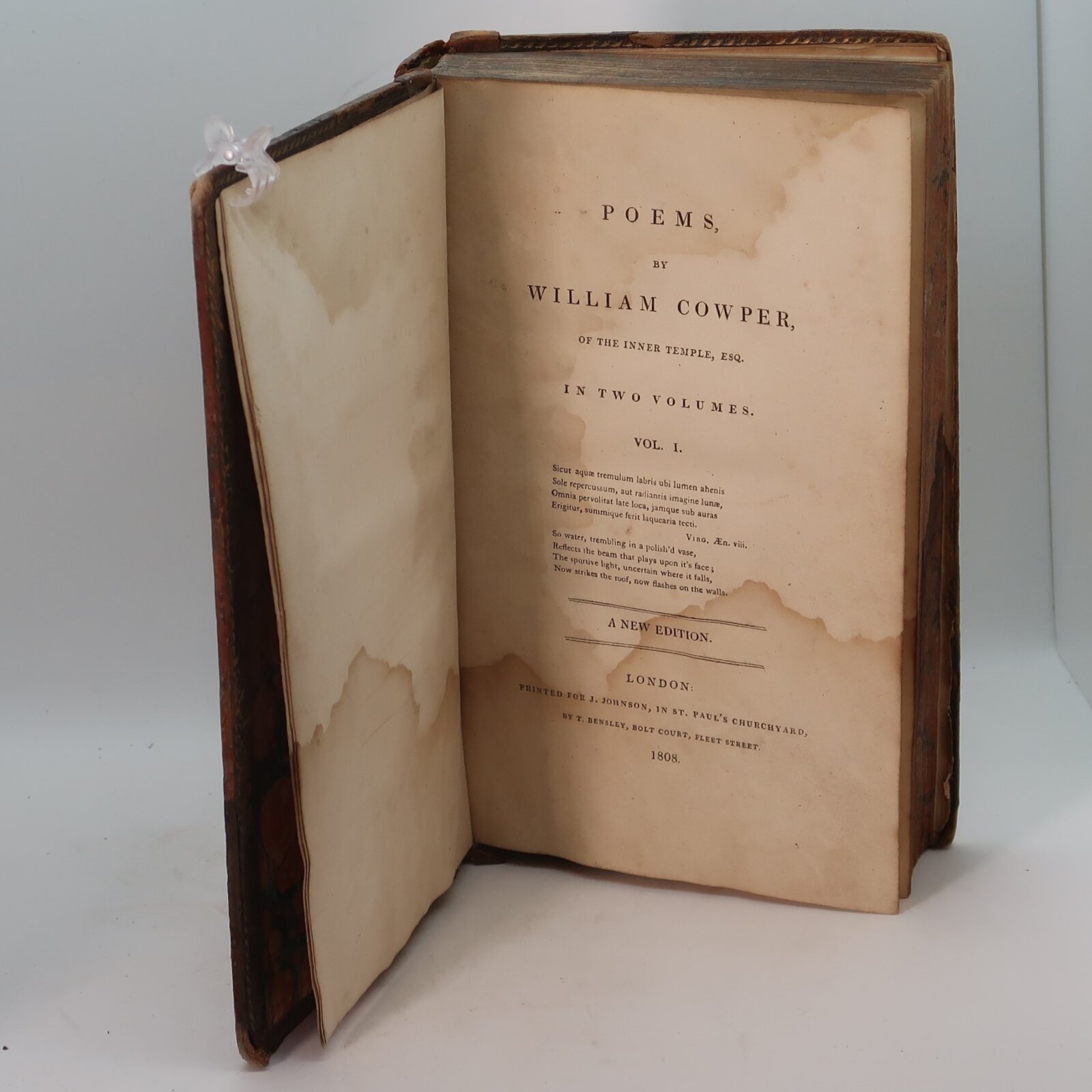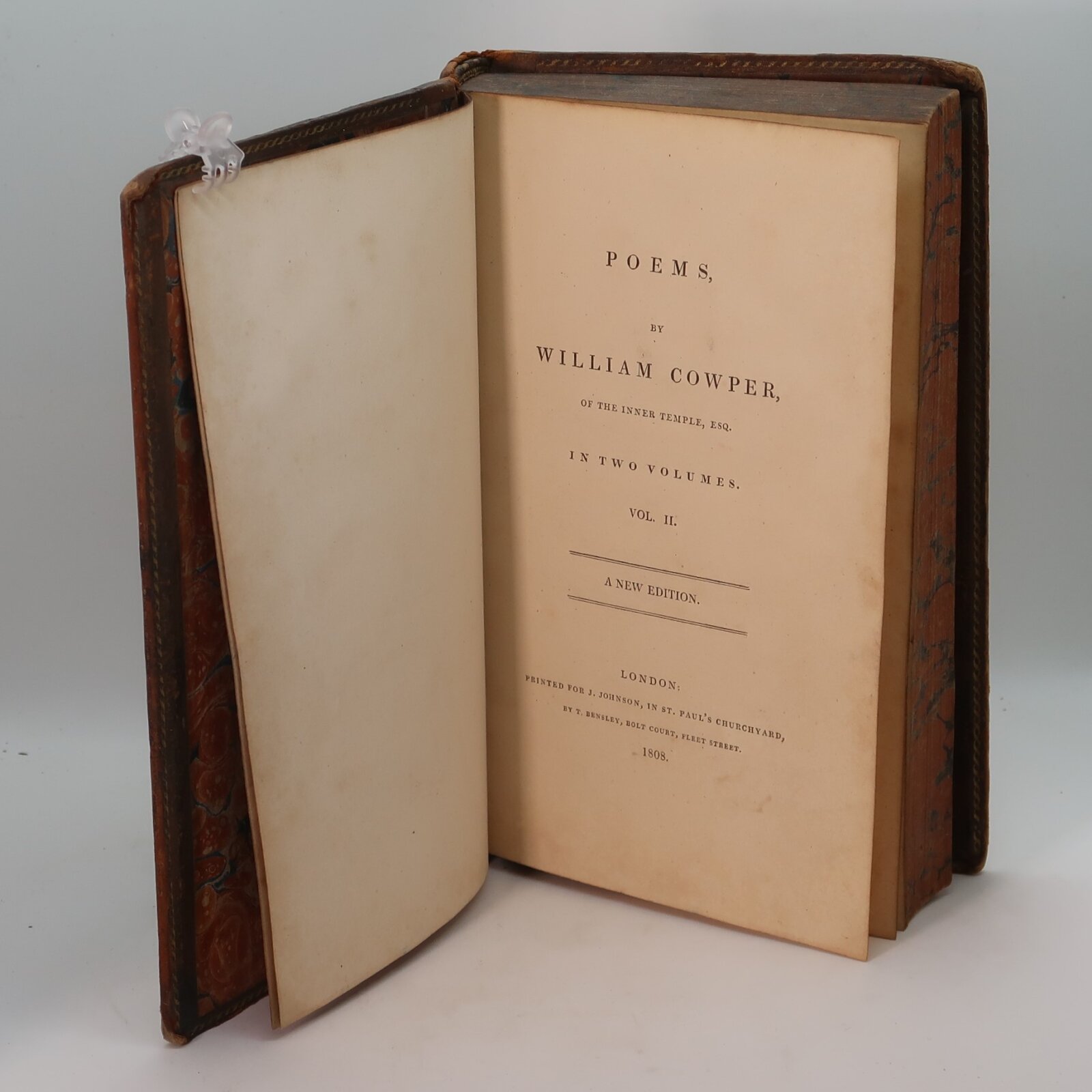 Tan leather binding with raised banding and gilt title and decoration on the spine, Gilt edge lineand embossed pattern on the boards. Dimensions are for one volume.