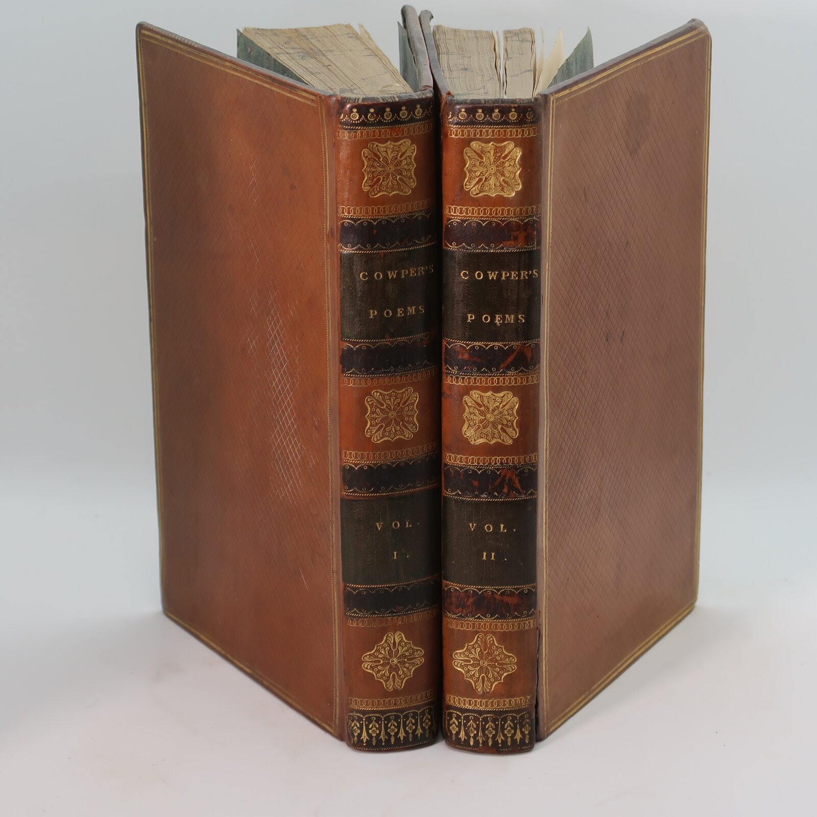 Tan leather binding with green title plates, black and gilt banding, gilt decoration and title on the spine.
