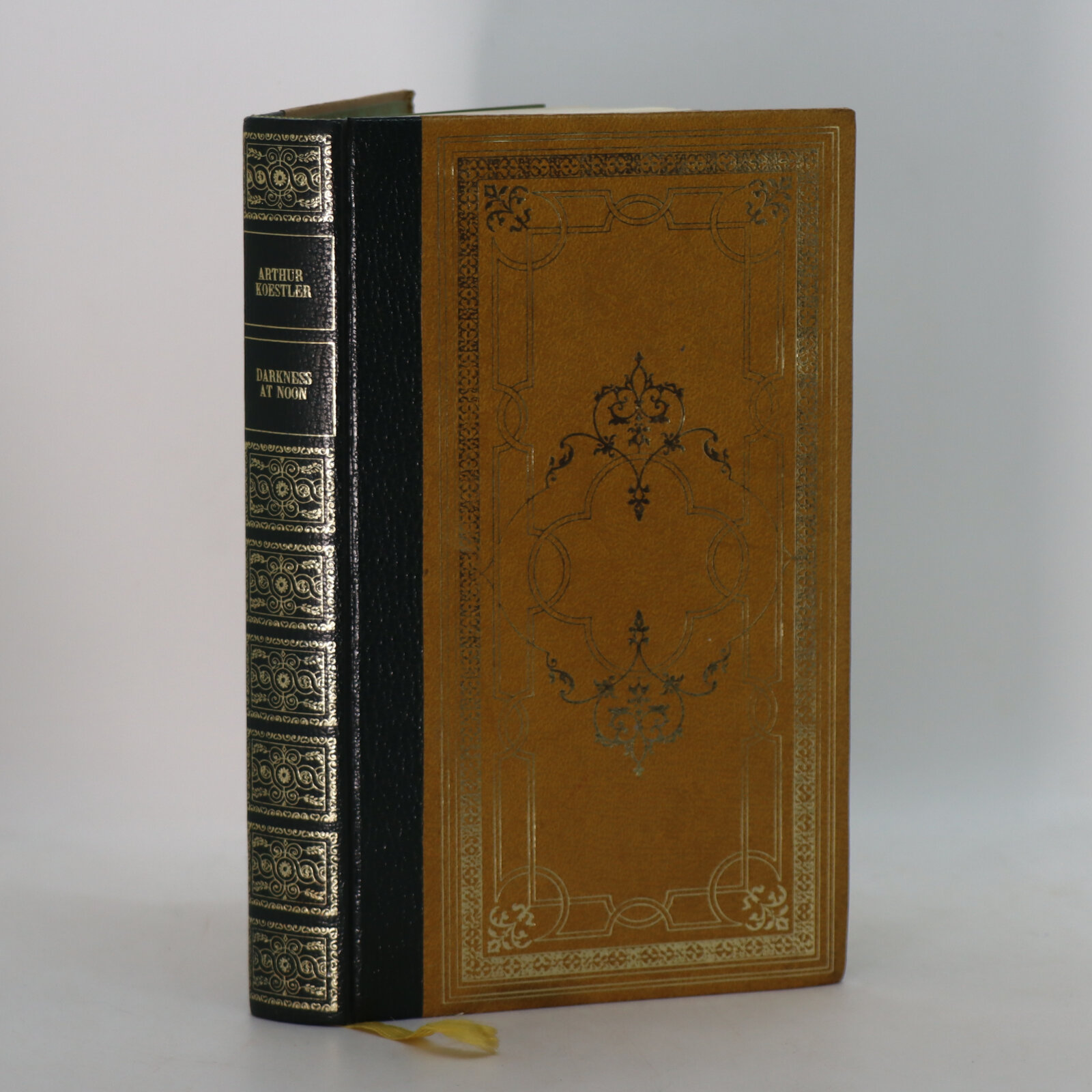 Green leatherette spine with gilt title and decoration. Sand leatherette boards with gilt decoration.