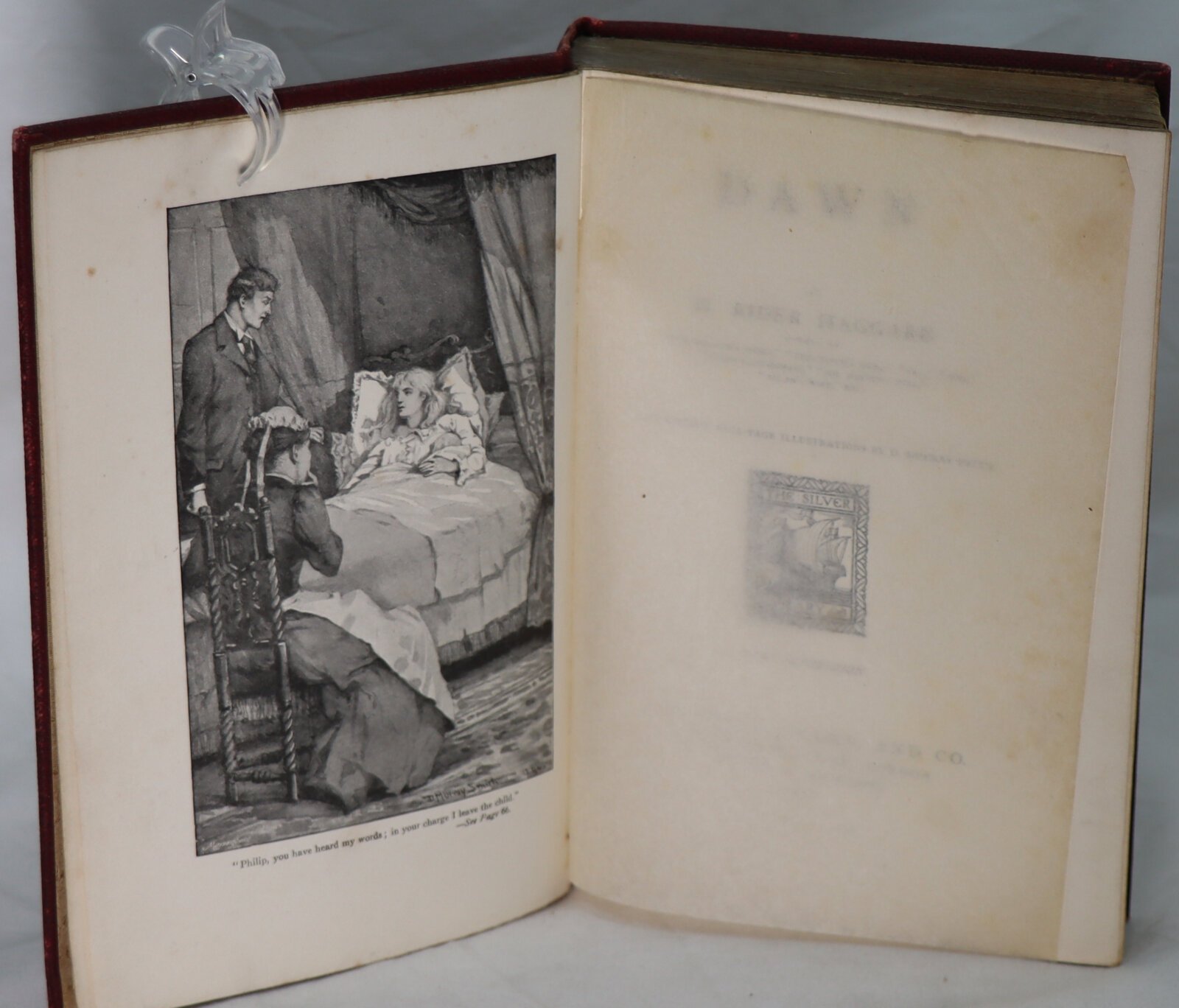 Dawn (1884) is the debut novel by British writer H. Rider Haggard. Haggard later said he was inspired to write the book while living in Norwood. He and his wife were attending a church service when they saw sitting near them “a singularly beautiful and pure-faced young lady” Afterwards we agreed that this semi-divine creature — on whom to the best of my knowledge I have never set eyes again from that day to this — ought to become the heroine of a novel. So then and there we took paper, and each of us began to write the said novel. I think that after she had completed two or three folio sheets my wife ceased from her fictional labours. But, growing interested, I continued mine, which resulted in the story called “Dawn.” Haggard never found out who the girl was but was sufficiently inspired to write the first draft at Norwood in 1882, while studying for the Bar. The novel was originally called Angela, which was the first name of the heroine of the story; Angela was also the name of Haggard’s eldest daughter. Haggard later redrafted the novel several times, one version being called There Remaineth a Rest. He sent it out to several publishers but it was rejected. He rewrote it again and eventually it was accepted by a publisher. Haggard later said the thought the novel “ought to have been cut up into several stories” and was too full of “amateur villains”. He says the novel “was more or less of a failure — of course I mean at that time, for after years it became extraordinarily successful.” It initially earned Haggard profits of ten pounds. The novel was filmed in 1917.