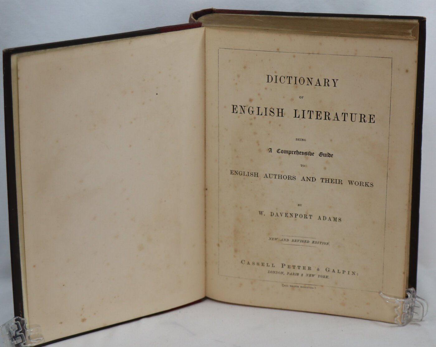 Books: Most of Adams books were compilations of the work of others, selected by Adams and with notes and annotations by him. He also wrote a few compilations of his own essays, as well as his two major reference works: A Dictionary of English Literature (1877) and the first volume of a planned two volumes of A Dictionary of the Drama (1904). The first of these was a dictionary with the names of authors, the titles of novels, poems, and plays, famous characters, familiar phrases and first striking words, as well as reference articles on the novel, the sonnet, etc. The Graphic described the work as “a book of reference of a most agreeable, and in many respects a novel class.” More than forty years after publication the Westminster Gazette called it “an extremely useful work”, although in need of being brought up to date.