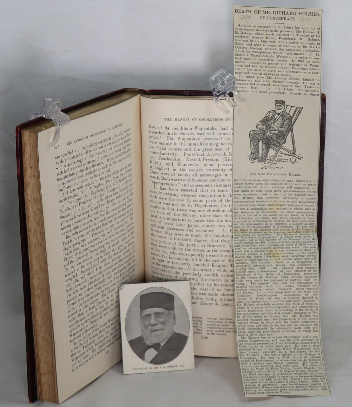 In 1635 he had met Dugdale, and the two had decided to collaborate in a Monasticon Anglicanum, for which Dodsworth had already made extensive collections. These were supplemented by Dugdale chiefly from the Cottonian library and some of the public records. The work was ready for the press in 1650, but the first volume was not actually published until 1655, after Dodsworth’s death, and the second in 1661. For the relative shares of Dodsworth and ‘that grand plagiary’ in this undertaking, see ‘Roger Dodsworth and his Circle’ by N. Denholm-Young and H.H.E. Craster in the Yorkshire Archaeological Journal, vol. xxxii (1934), pp. 5-32. In his later years, apart from the Monasticon, Dodsworth was also gathering material for a history of Yorkshire and for a Baronage. Further details are given in the Dictionary of National Biography.