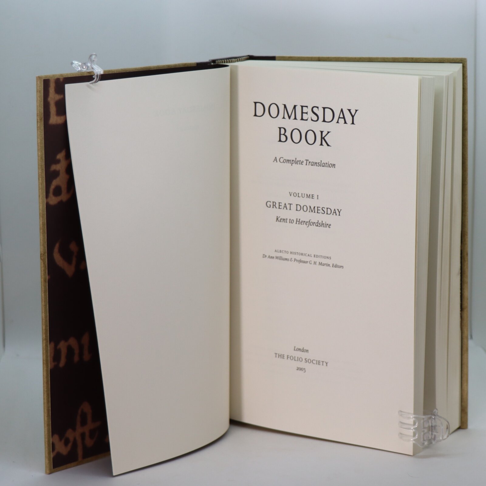 In a matching fitted box. Brown leather spines with gilt title. Mottled tan paper boards with brown oval image of sheep and a church on the front board.