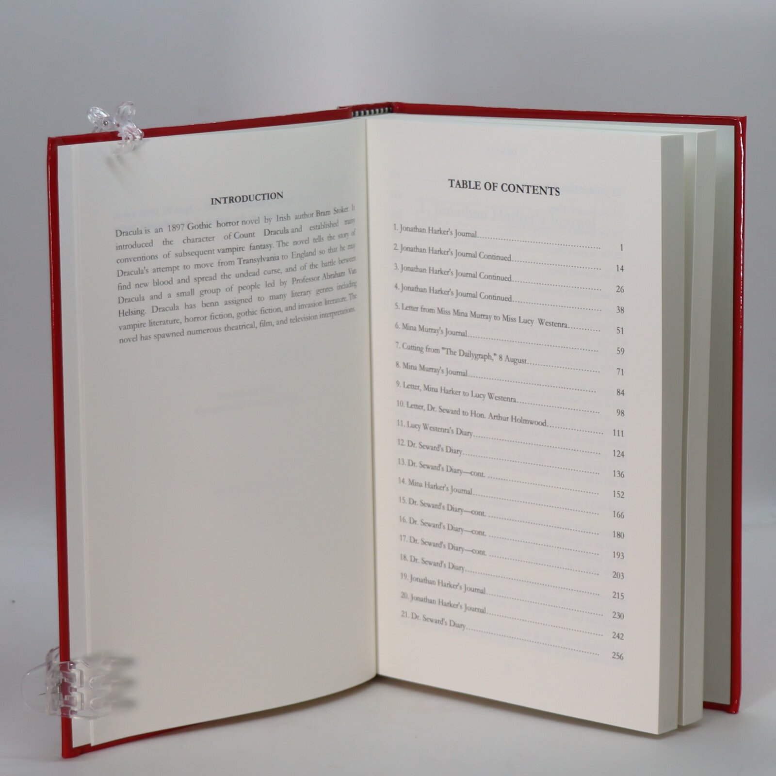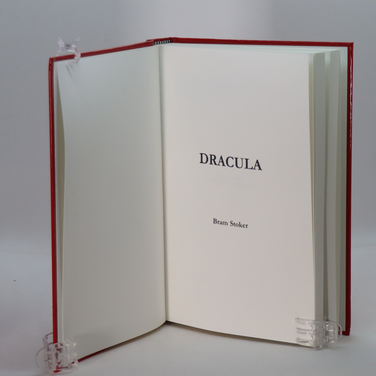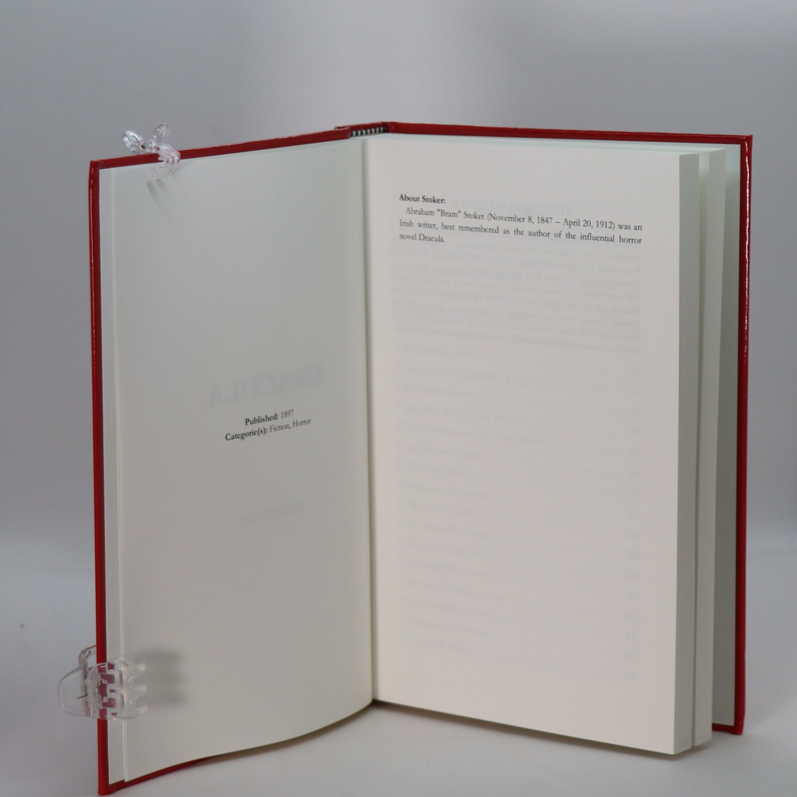 Red glazed paper binding with grey title on the spine. Front board has grey diagonal title with black and grey full board design.