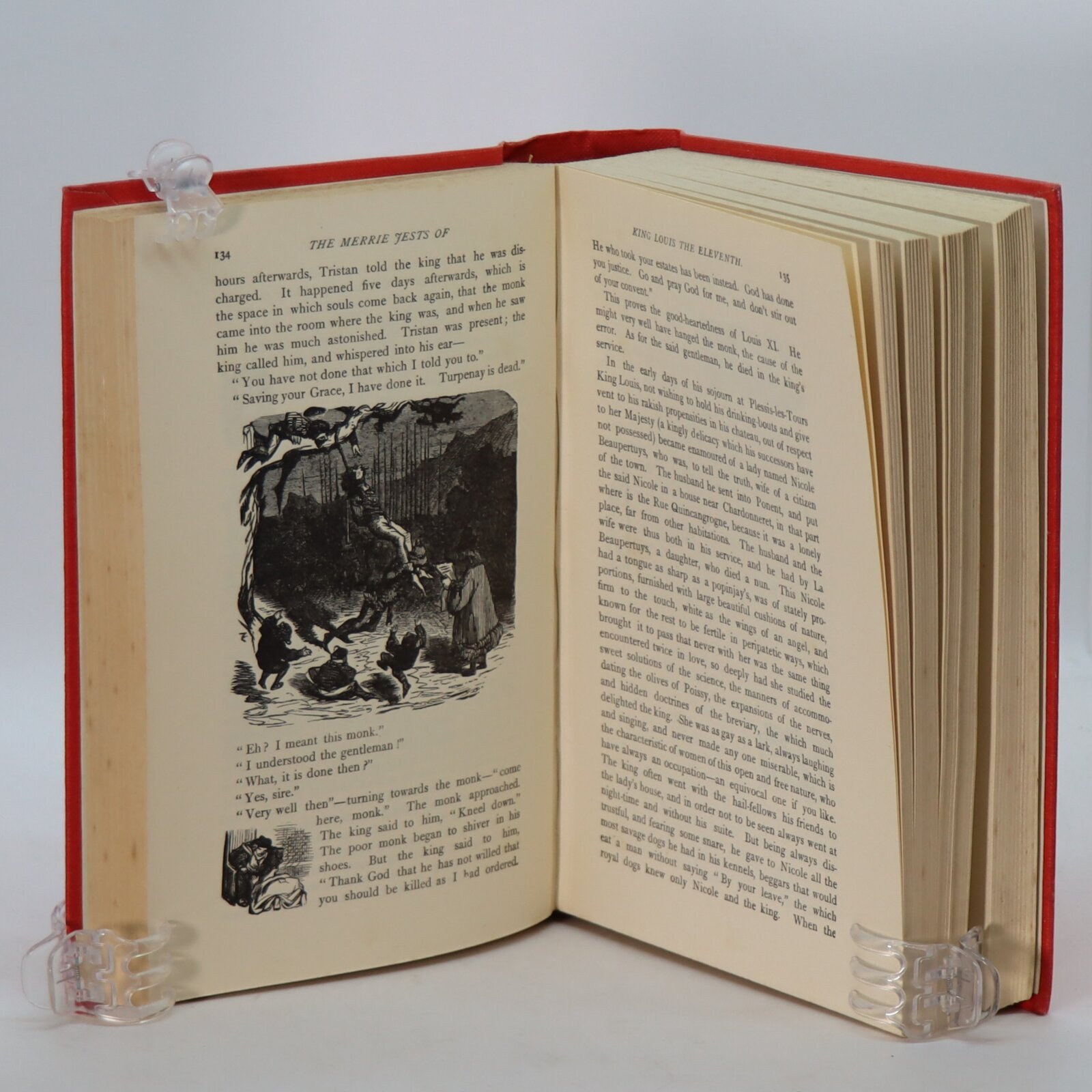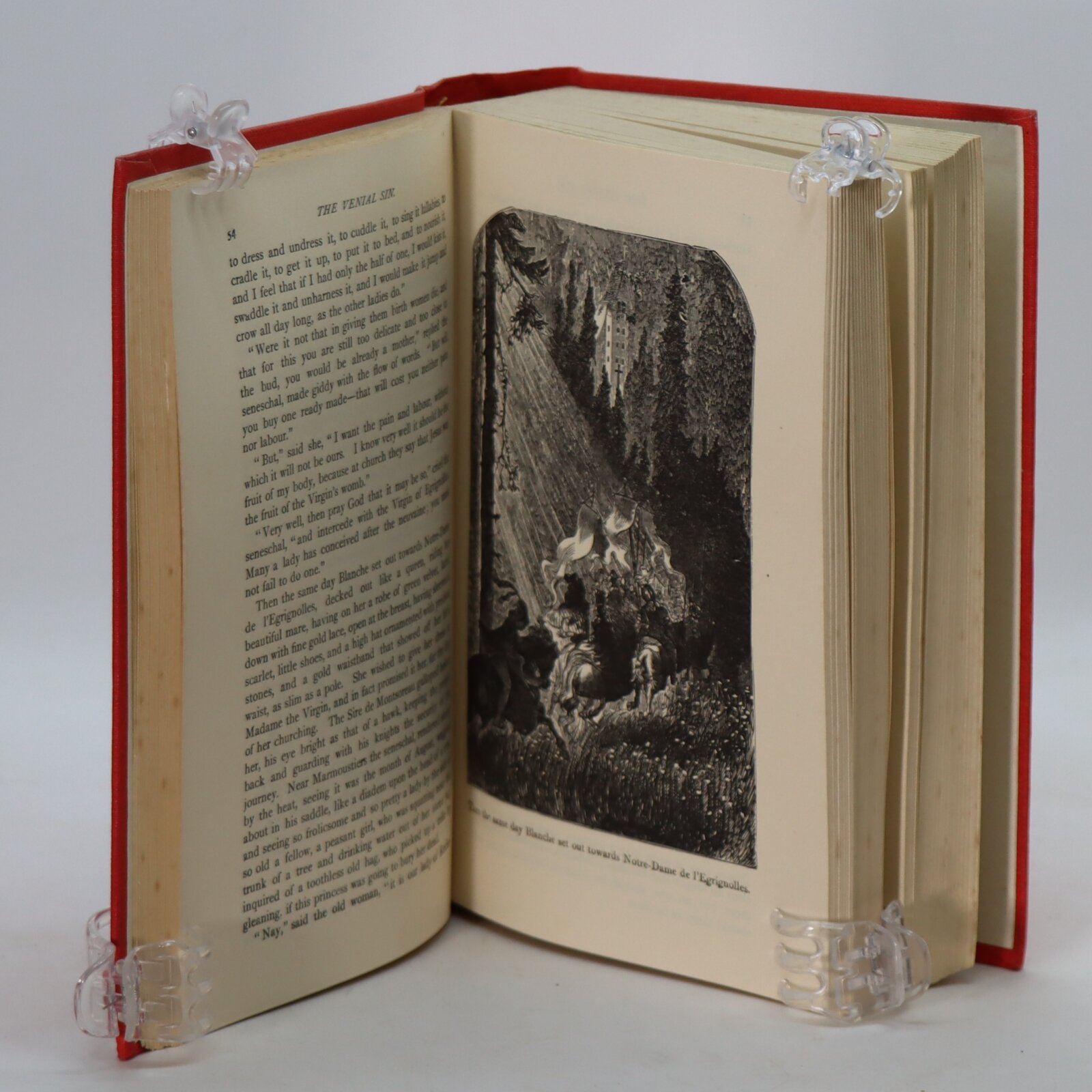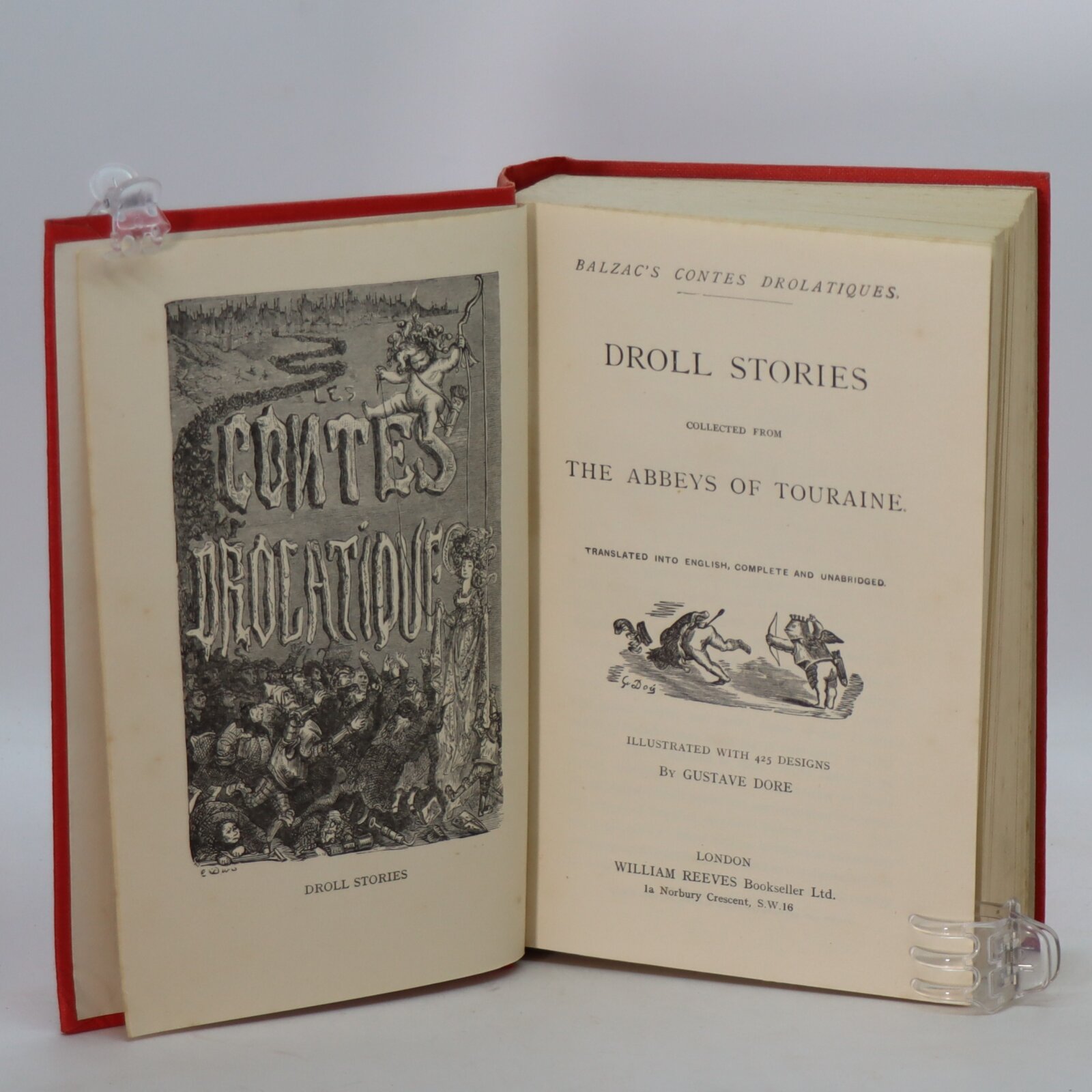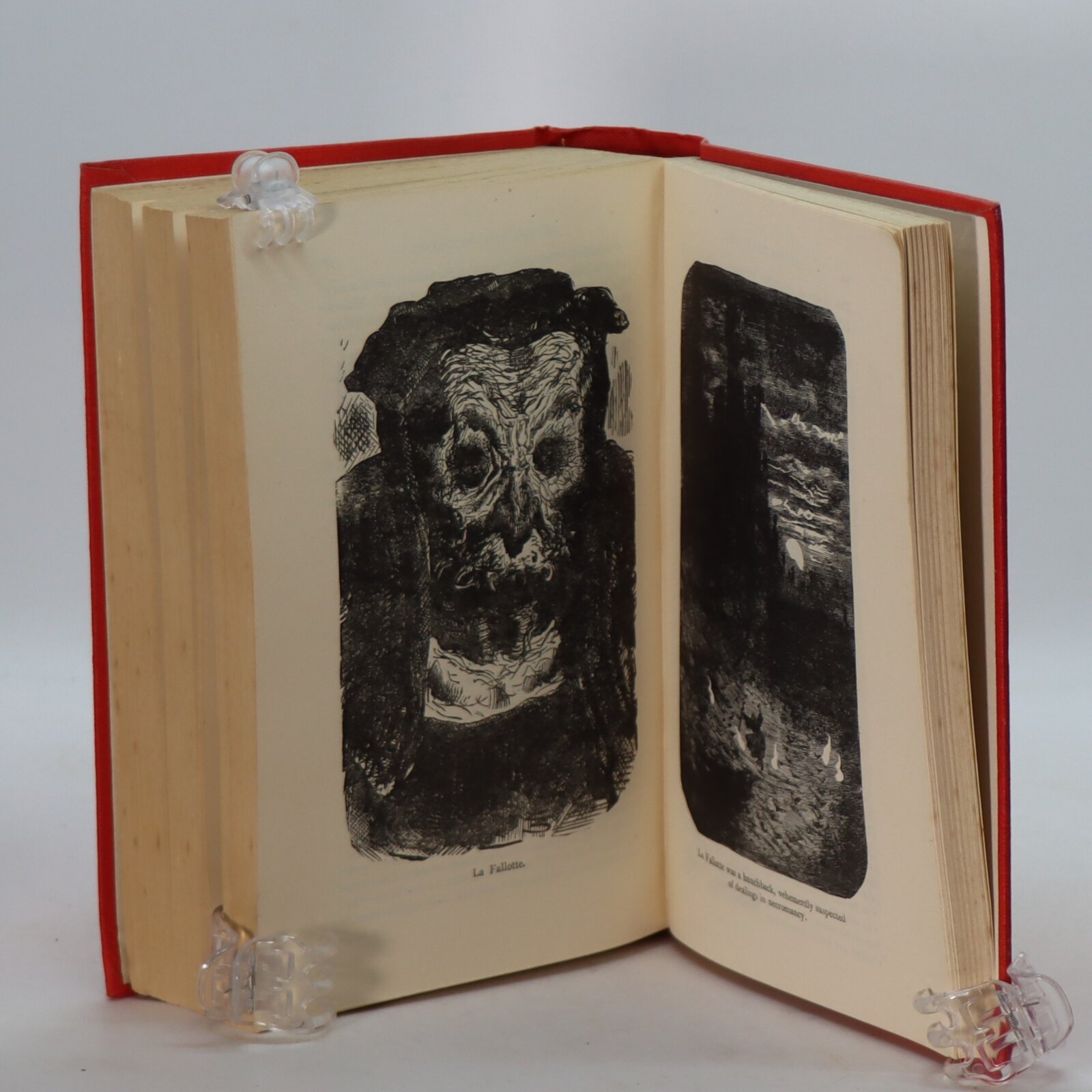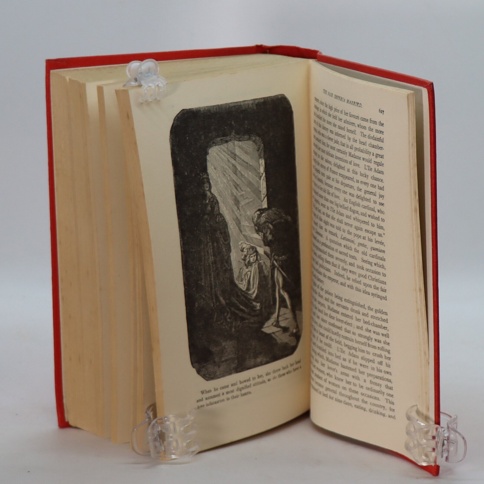 Red cloth binding with gilt title and embossed black and gilt figures on the front board. Similar on the spine. Over 400 Illustrations by Gustave Dore.
