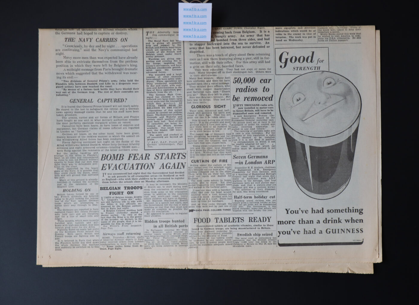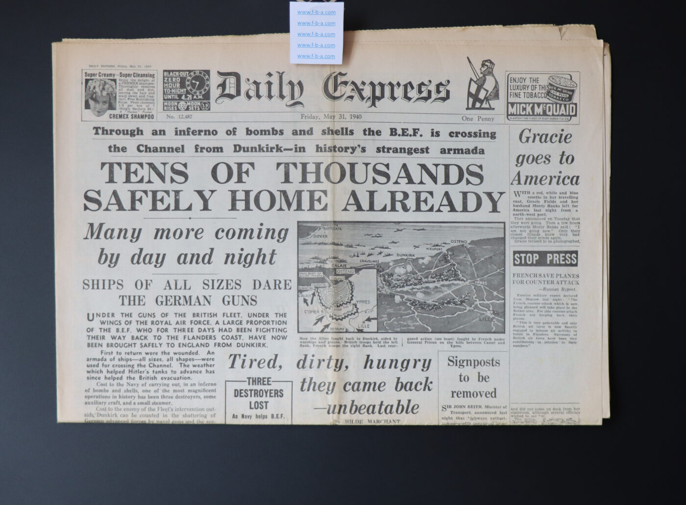 DUNKIRK SECOND WORLD WAR. DAILY EXPRESS Friday May 31st 1940