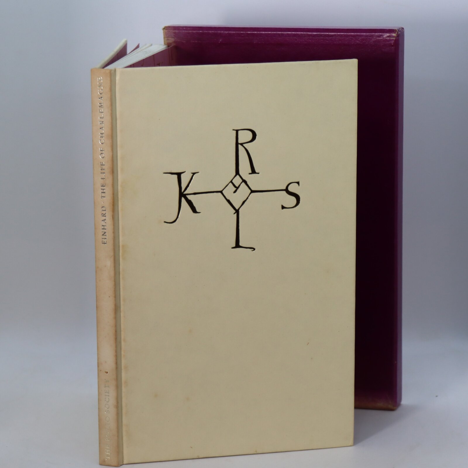 In a fitted box. Cream board binding with gilt title on the spine and gilt cipher of Charlemagne on the front board.