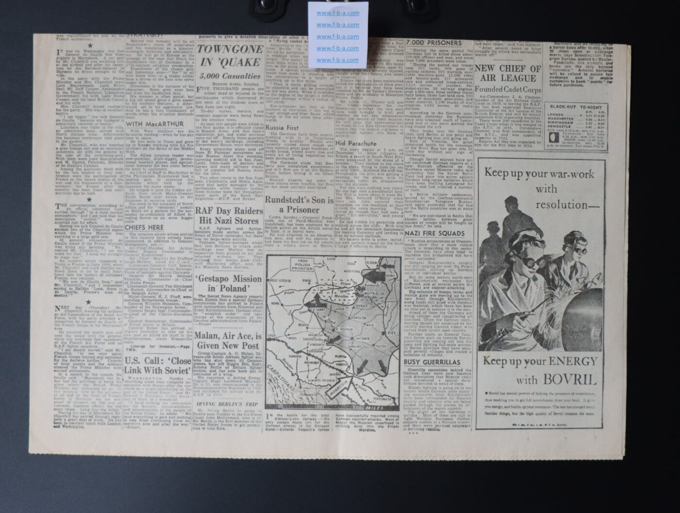 Please note: with few exceptions all Martin Frost Vintage News papers are original or an old facsimile of the original. Such are priced for their scarcity and desirability to collectors.