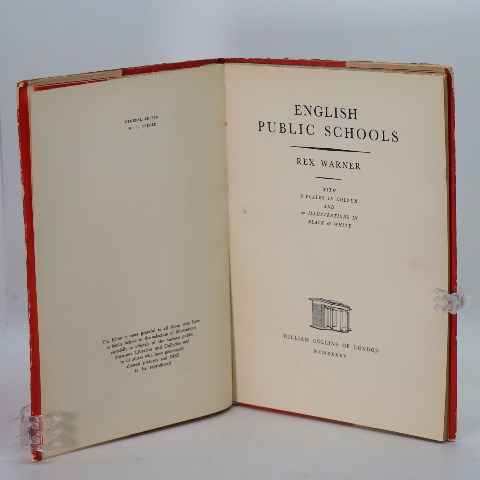 In original dust sheet. Red paper binding with cream title and arched entrance building on the front board.