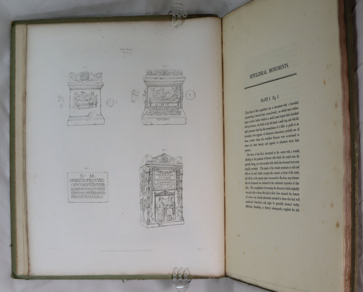 FIRST EDITION: “A description of the sculptures which adorned the Temple of Apollo Epicurius, on Mount Cotylion, a little distance from the ancient city of Phigalia in Arcadia.” Original boards, still stiff and in good condition but with some darkening on the spine and slight scuffing on the edges. There are twenty-eight engravings depicting the battle between the Centaurs and Lapithae, and two engravings of the Temple of Apollo Epicurius. The plates are in fine condition.
