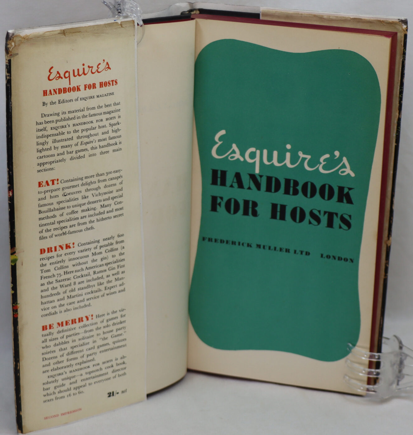 In the original (repaired) dust cover. Black cloth binding with gilt title on the spine. Slight water stain on the binding.
