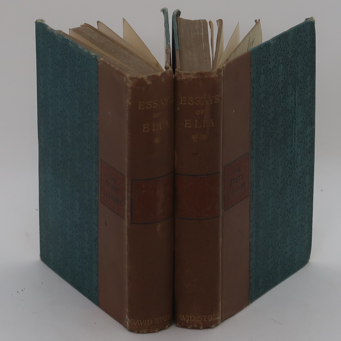 Tan cloth spine with gilt title. Blue patterned boards. Dimensions are for one volume.