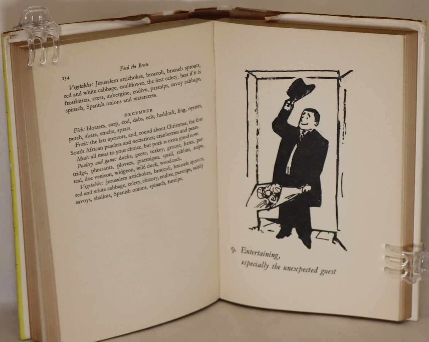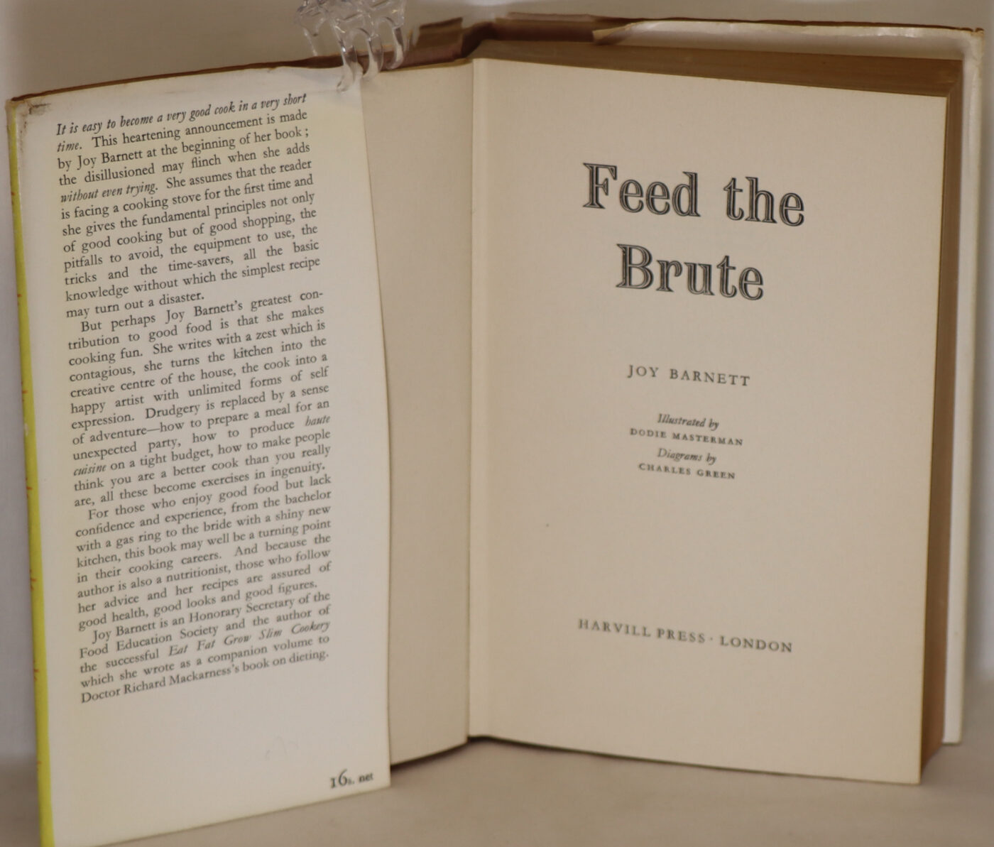 Early printing. It takes readers under the wing of this little book of cooking and hosting advice, especially written for young wives on a tight budget. Her title “Feed the Brute” comes from a phrase that started showing up in as early as the 1880s, usually given in response to young wives inquiring as to how to keep their husbands’ love and affection. “The well-fed man is a happy man,” though it continues on to say, “and a very easily ‘managed’ one too. While the book does not offer any managing advice, the culinary skills are evident in how one creates menus, makes plans for unexpected guests, and instructs her readers on how to cook. A product of its time, “Feed the Brute!” is a charming little book that offers not only a glimpse into the cooking of the early 20th century, but also into its culture.