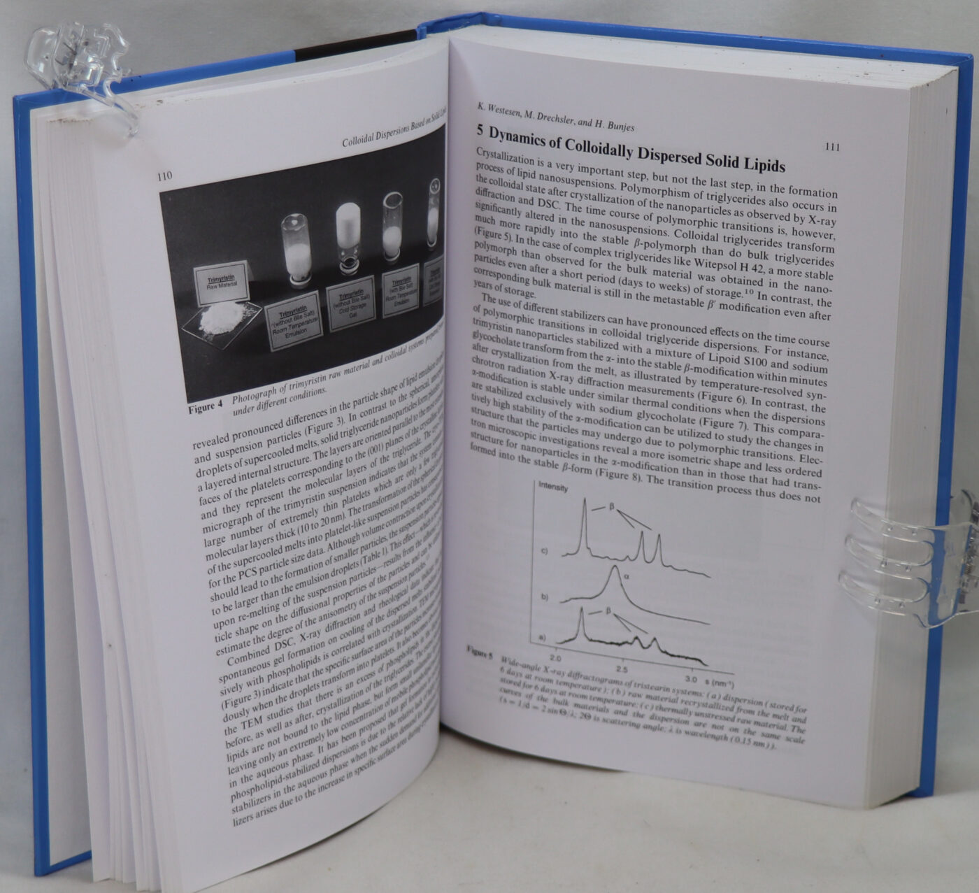 Hard back. Blue board binding with white title.