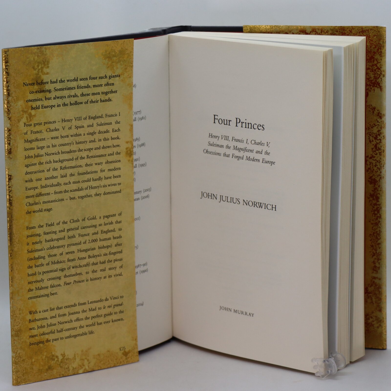 Four Princes: Henry VIII, Francis I, Charles V, Suleiman the Magnificent and the Obsessions that Forged Modern Europe ‘Never before had the world seen four such giants co-existing. Sometimes friends, more often enemies, always rivals, these four men together held Europe in the hollow of their hands.’ Four great princes – Henry VIII of England, Francis I of France, Charles V of Spain and Suleiman the Magnificent – were born within a single decade. Each looms large in his country’s history and, in this book, John Julius Norwich broadens the scope and shows how, against the rich background of the Renaissance and destruction of the Reformation, their wary obsession with one another laid the foundations for modern Europe. Individually, each man could hardly have been more different – from the scandals of Henry’s six wives to Charles’s monasticism – but, together, they dominated the world stage.