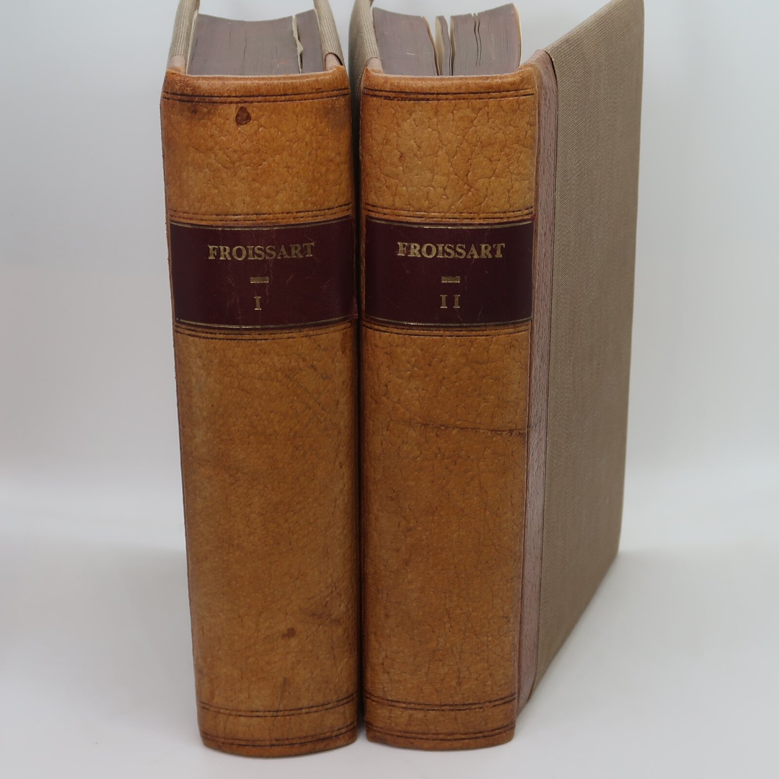 Tan leather spine with brown title plate and gilt title on the spine. Beige cloth boards.