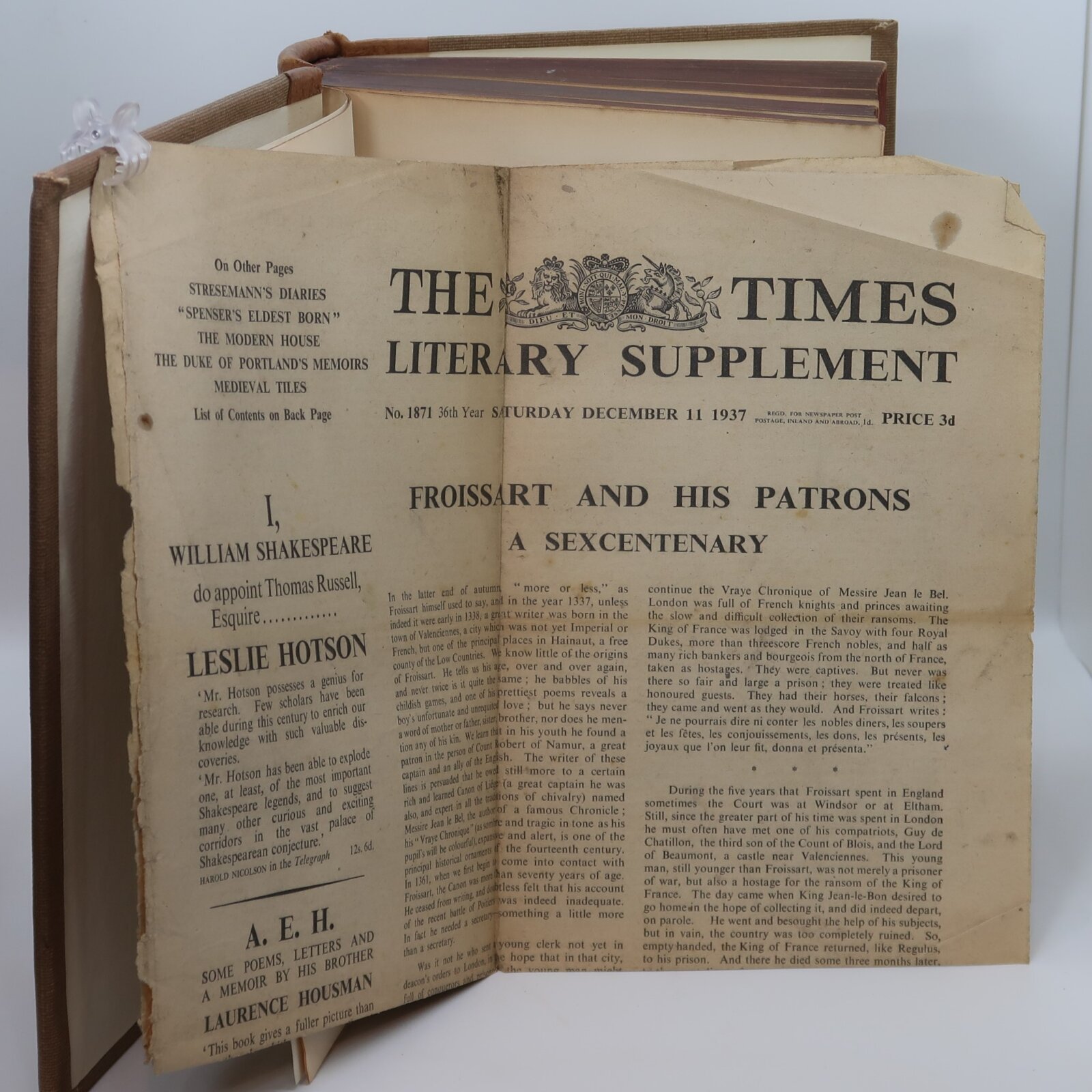 Dimensions are for one volume. Includes a page from the Times Literary Supplement 1937.