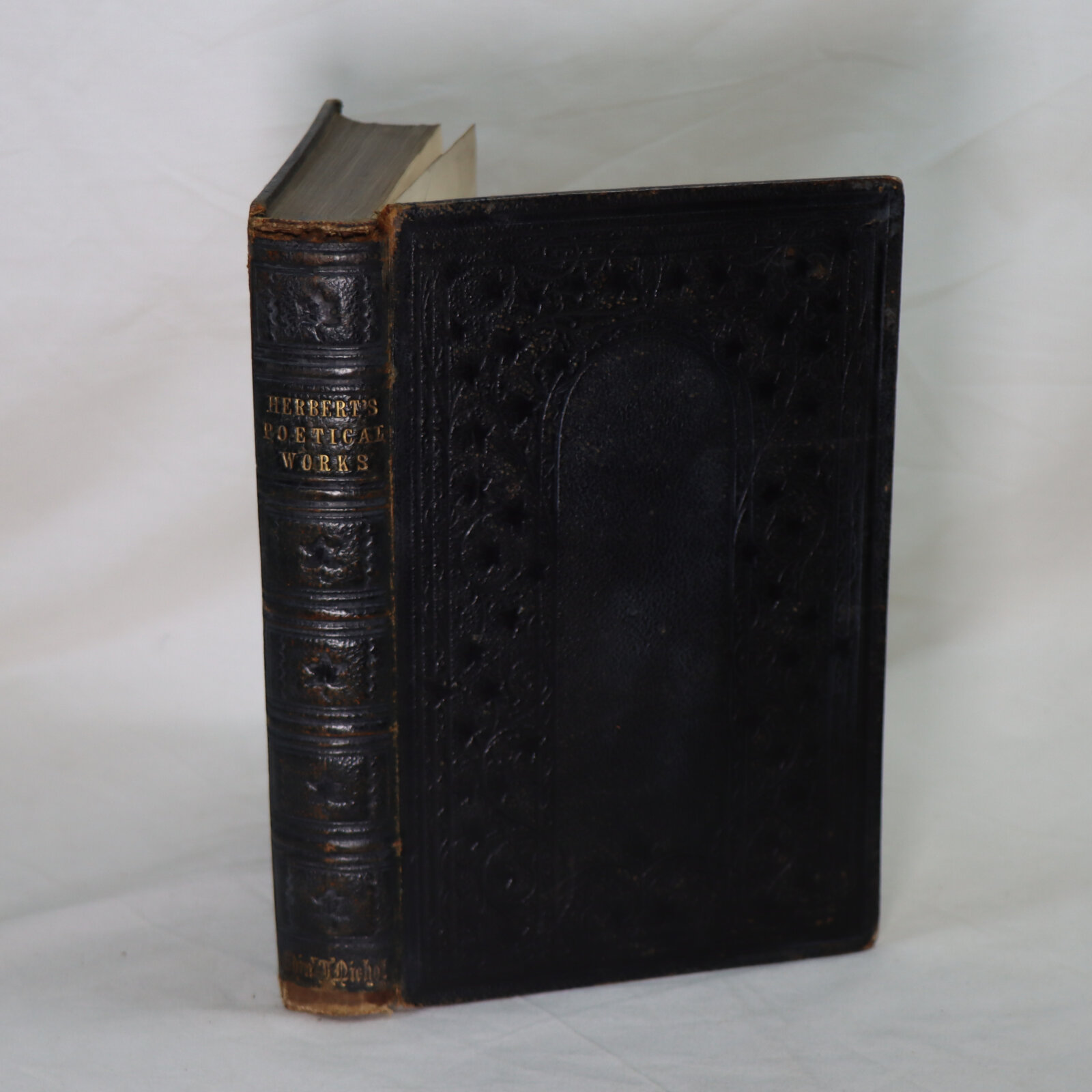 Black embossed pattern leather binding with gilt title on the spine.