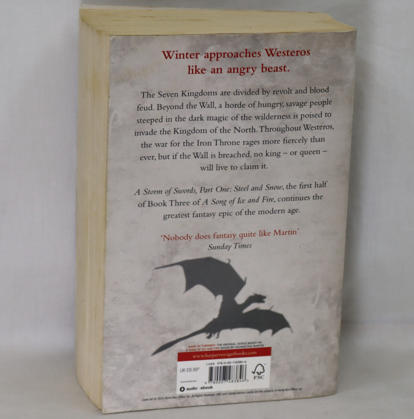 For conditions please view our photographs. A Storm of Swords: Part 1 Steel and Snow: The bestselling classic epic fantasy series behind the award-winning HBO and Sky TV show and phenomenon GAME OF THRONES: Book 3 (A Song of Ice and Fire) Paperback – 27 Mar. 2014 by George R.R. Martin (Author). Part of: A Song of Ice and Fire (2 books)