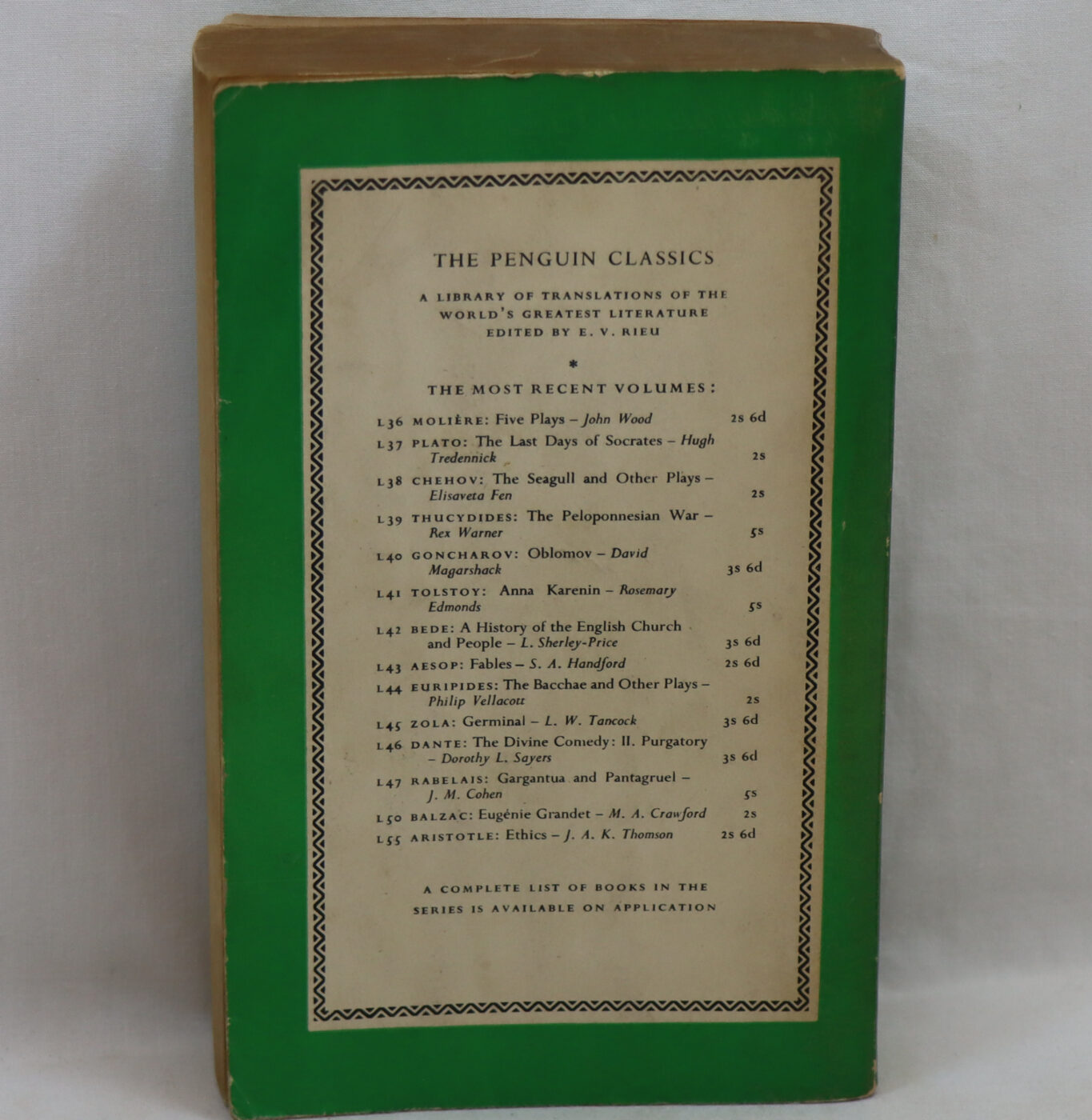 Paperback. Cream and green cover with black title.