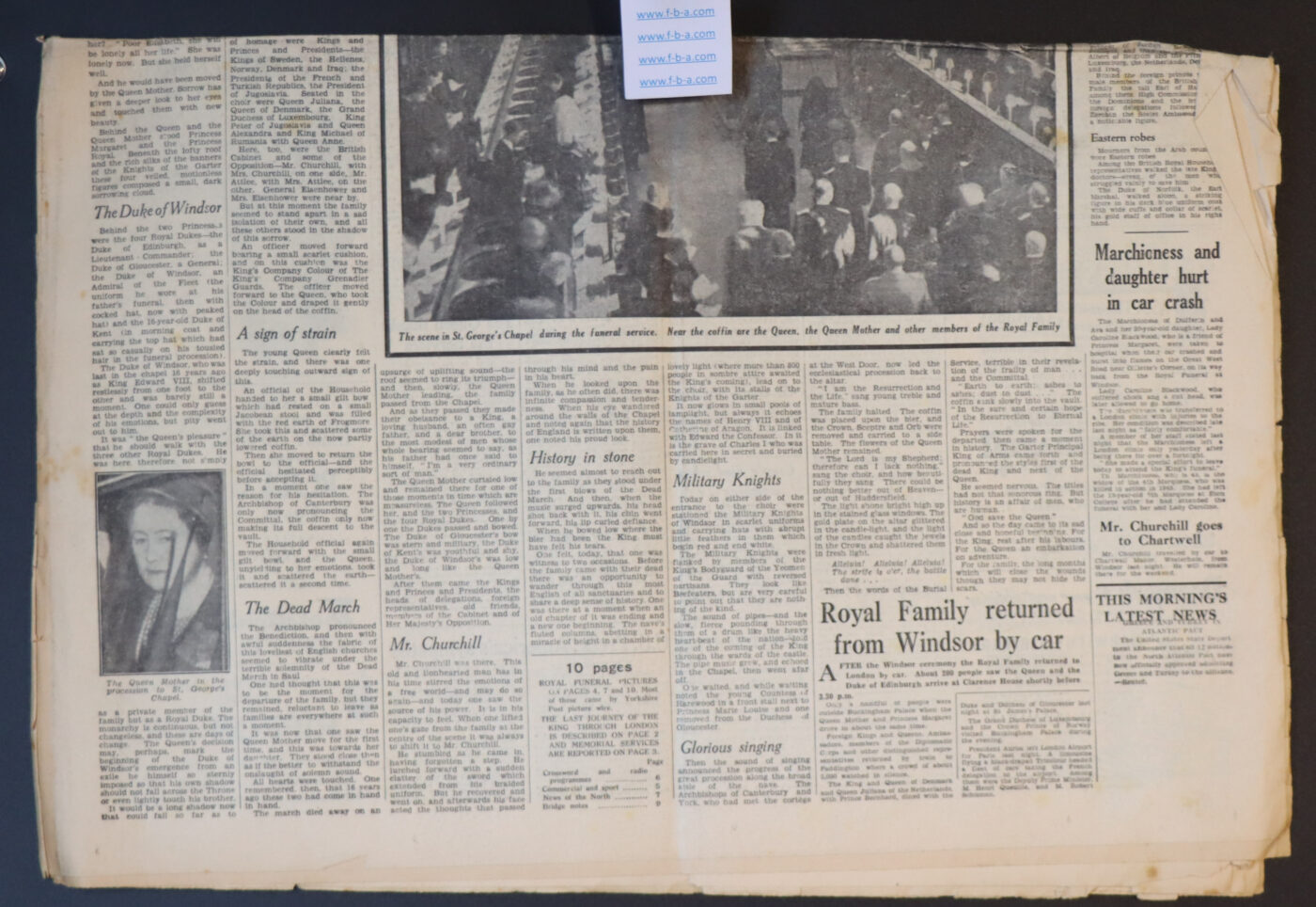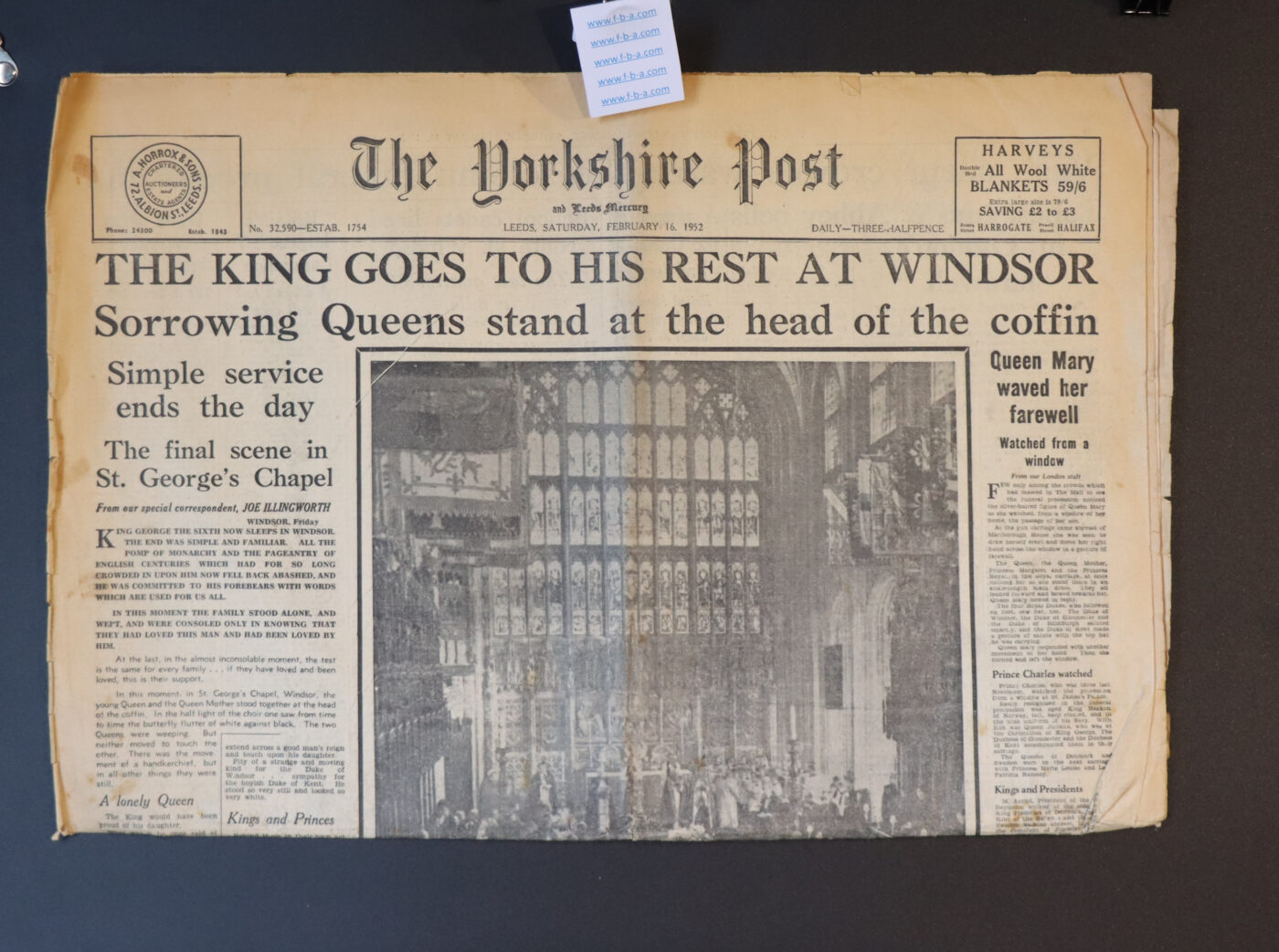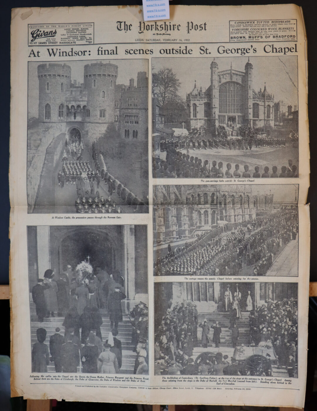 GEORGE VI’s FUNERAL . British Royal Family. THE YORKSHIRE POST. SATURDAY FEBRUARY 16th 1952