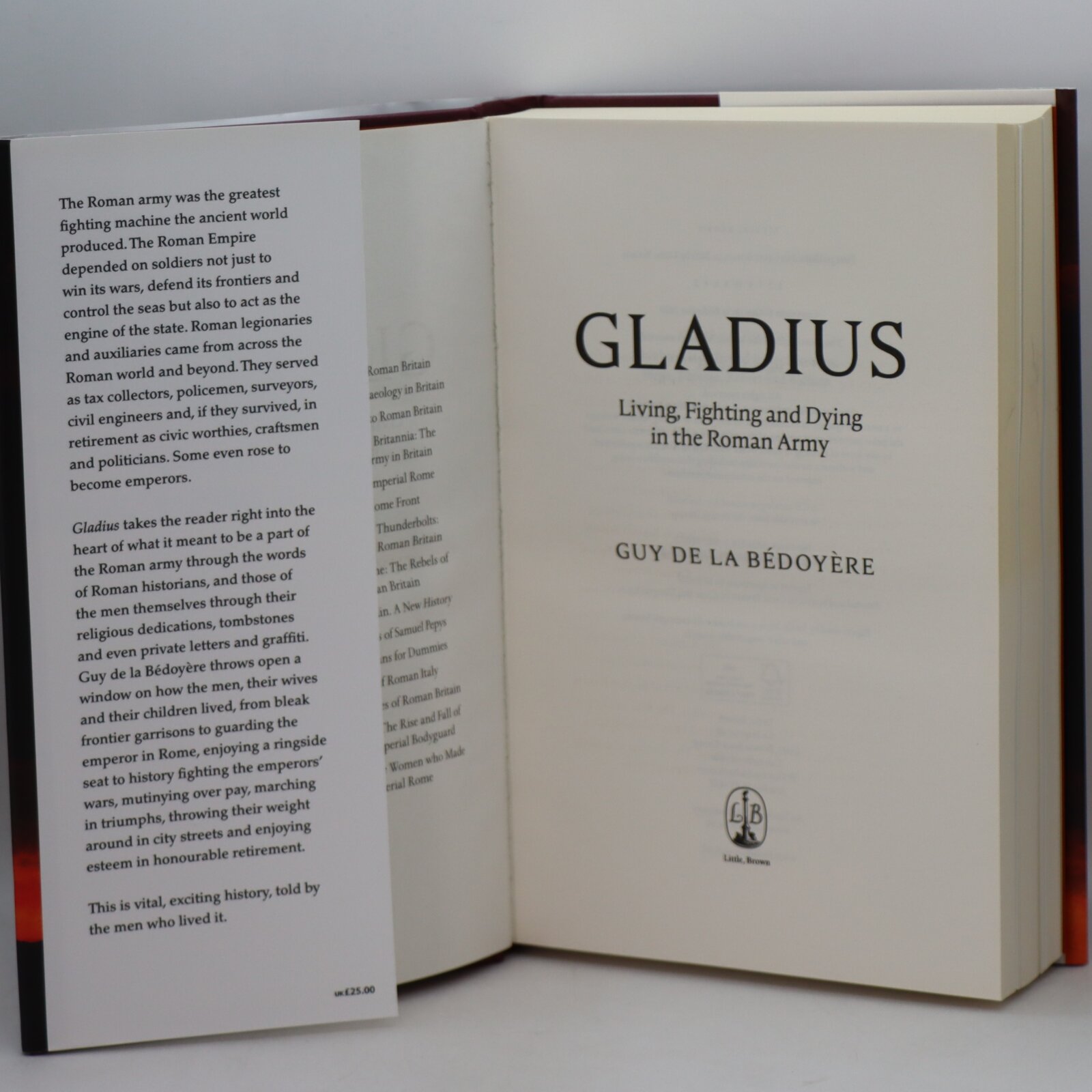 The Roman army was the greatest fighting machine the ancient world produced. The Roman Empire depended on soldiers not just to win its wars, defend its frontiers and control the seas but also to act as the engine of the state. Roman legionaries and auxiliaries came from across the Roman world and beyond. They served as tax collectors, policemen, surveyors, civil engineers and, if they survived, in retirement as civic worthies, craftsmen and politicians. Some even rose to become emperors. Gladius takes the reader right into the heart of what it meant to be a part of the Roman army through the words of Roman historians, and those of the men themselves through their religious dedications, tombstones, and even private letters and graffiti. Guy de la Bedoyere throws open a window on how the men, their wives and their children lived, from bleak frontier garrisons to guarding the emperor in Rome, enjoying a ringside seat to history fighting the emperors’ wars, mutinying over pay, marching in triumphs, throwing their weight around in city streets, and enjoying esteem in honourable retirement.