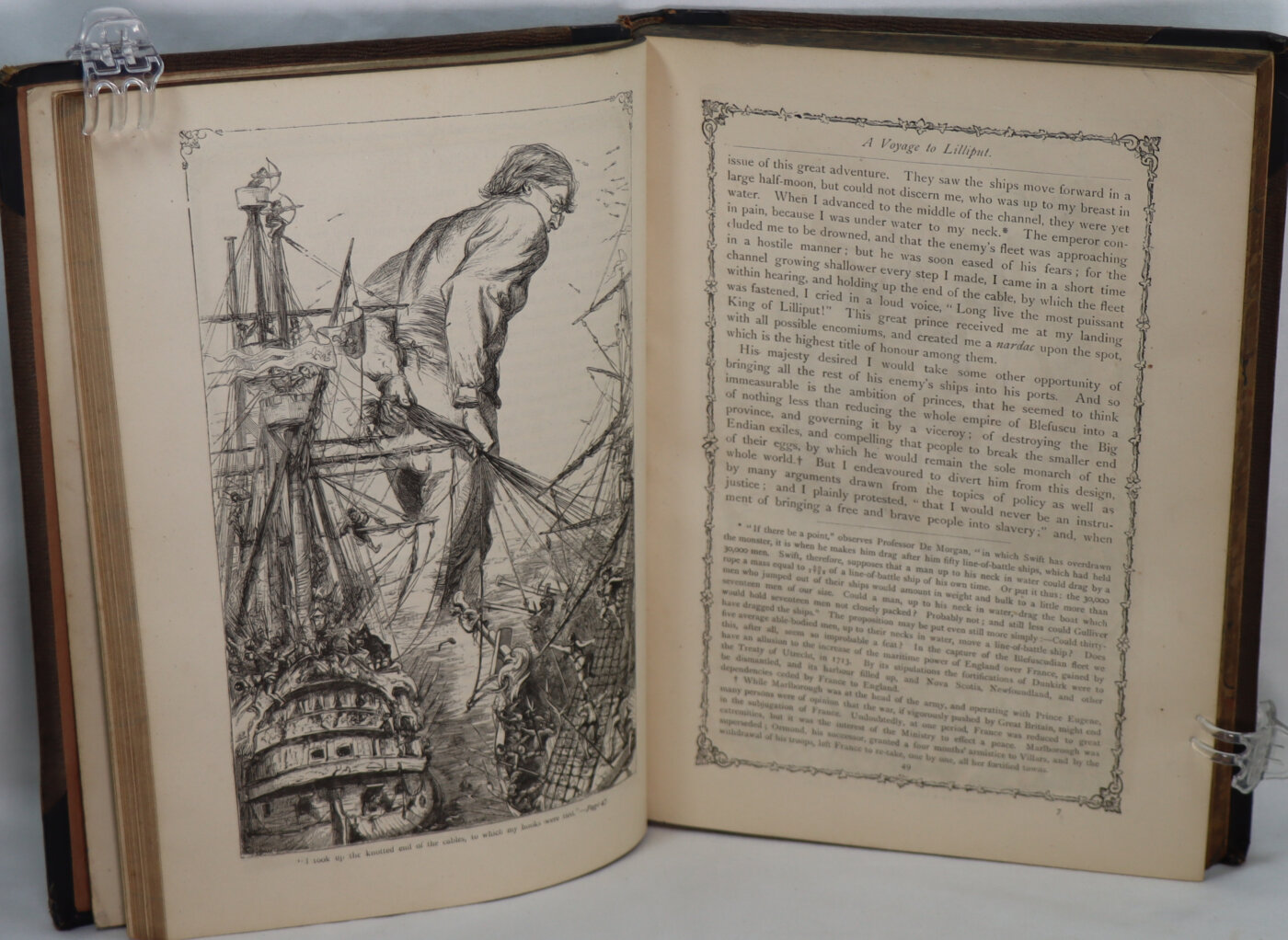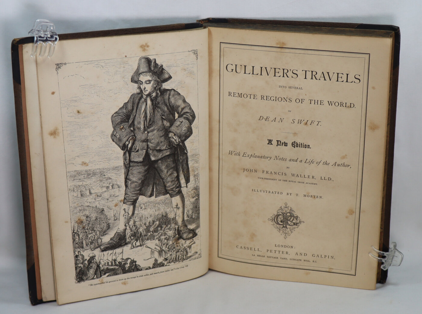 Gulliver”s Travels into several Remote Regions of the World. A new edition. With Explanatory Notes and a Life of the Author by John Francis Waller. Illustrated by T. Morten is a pleasant rendition of Swift’s famous tale. This volume has age wear and though foxed remains very readable with well preserved illustrations.