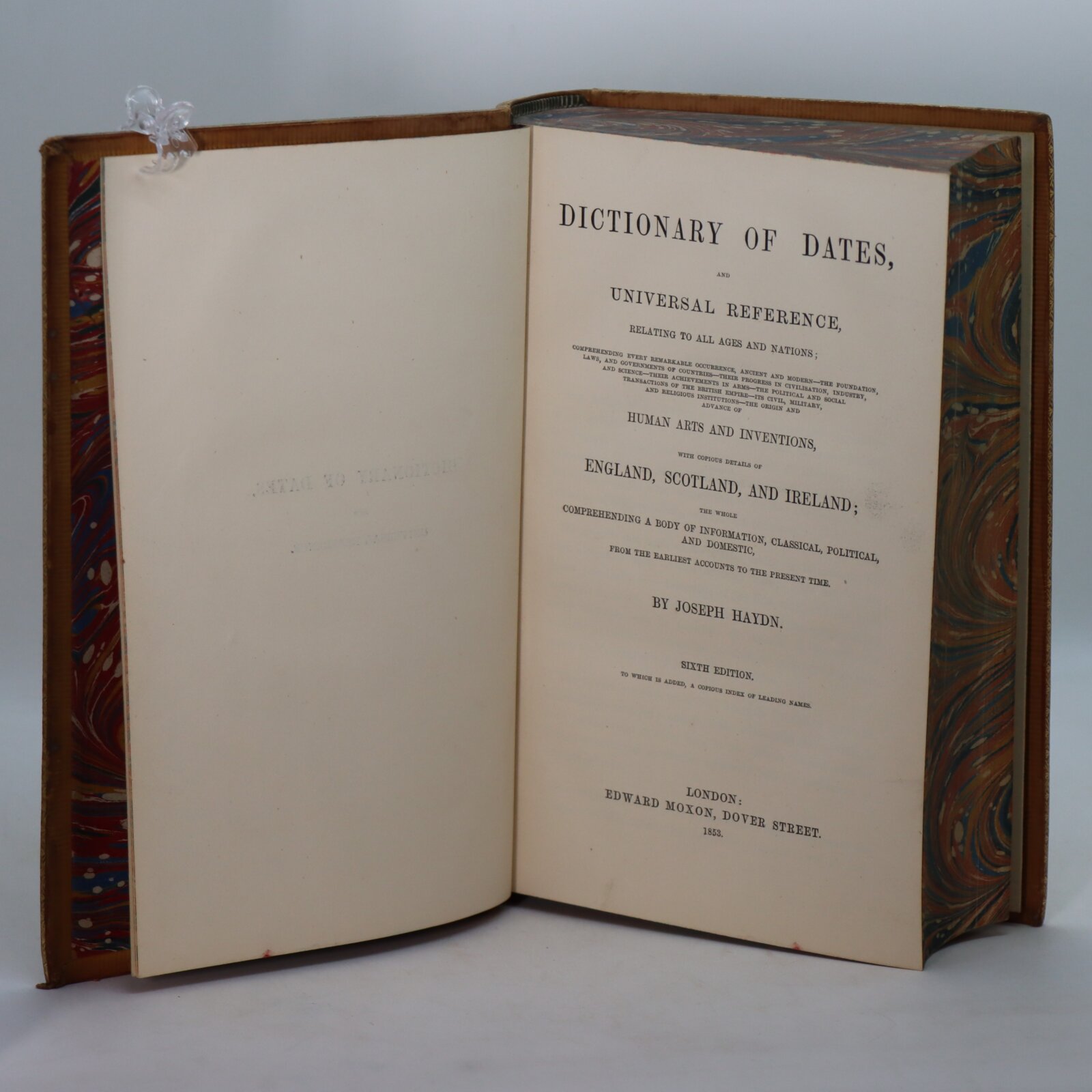 Joseph Timothy Haydn (died 17 January 1856), compiler of dictionaries, was well known as the author of the “Dictionary of Dates”, 1841 (19th edition, 1889), and of the “Book of Dignities”, 1851 (3rd revised edition, 1894). The “Book of Dignities” was a modernised form of Robert Beatson’s “Political Index” but omits the lists of holders of many important offices. He also edited Samuel Lewis’ “Topographical Dictionaries”. His name is used in the “Haydn Series” of dictionaries, which are on the same lines as those compiled by him. He does not, however, appear to have taken any part in their actual compilation. They are the “Universal Index of Biography”, edited by J. B. Payne, 1870; “Bible Dictionary”, edited by C. Boutell, 1871 (2nd edition, 1878); “Dictionary of Popular Medicine and Hygiene”, edited by Dr. E. Lankester, 1874 (2nd edition, 1878). For a short time before his death, on 18 January 1856, Haydn had been in receipt of a small pension of £25 granted by the government. It was continued to his widow.