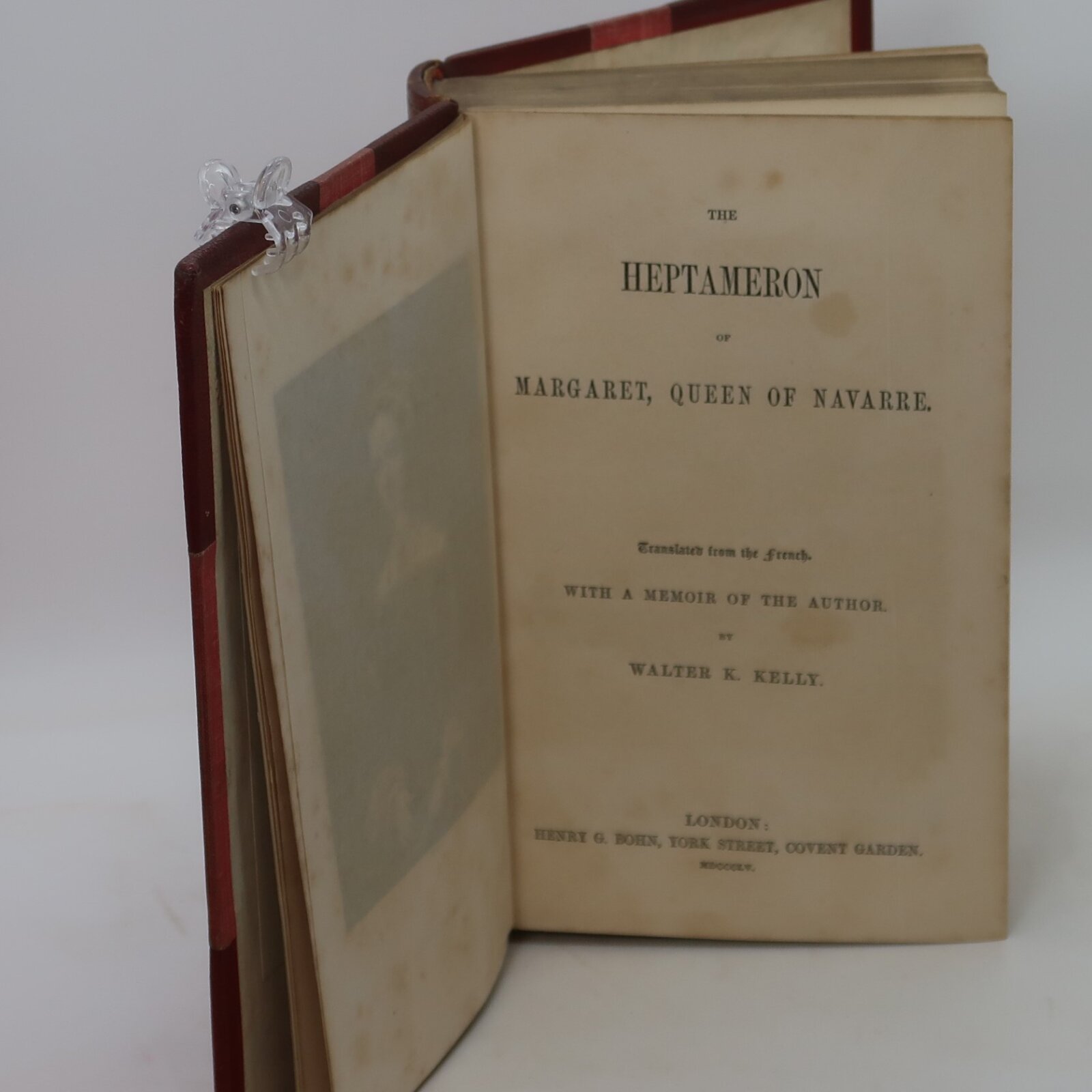Red Leather spine with raised banding, green title plate and gilt lettering. Red cloth boards.
