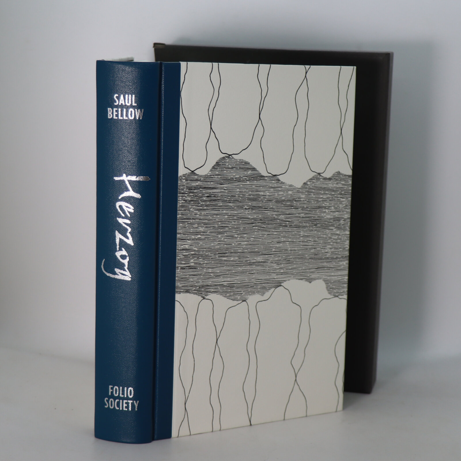 In a fitted box. Green cloth spine with silver title. White and grey design on the boards.
