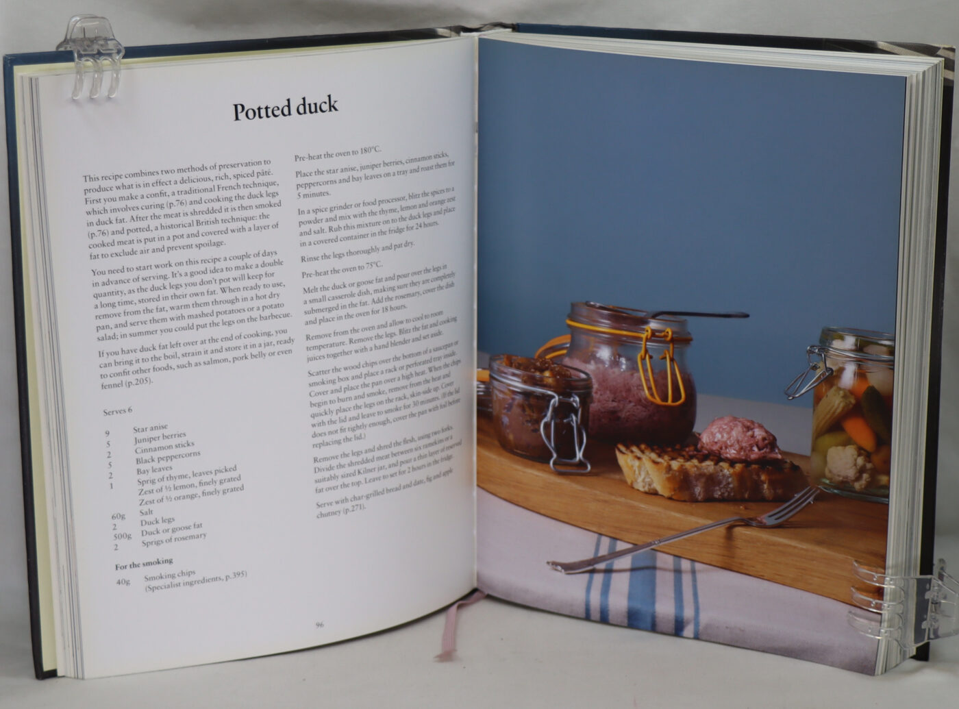 Hardcover. Grey board binding with Heston image and white title on the front board.
